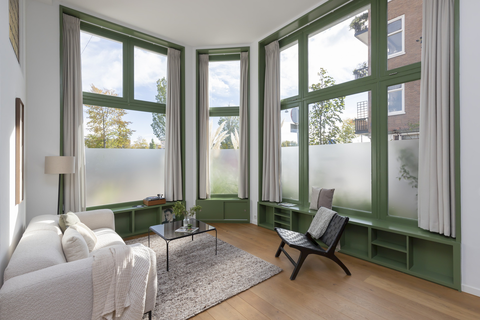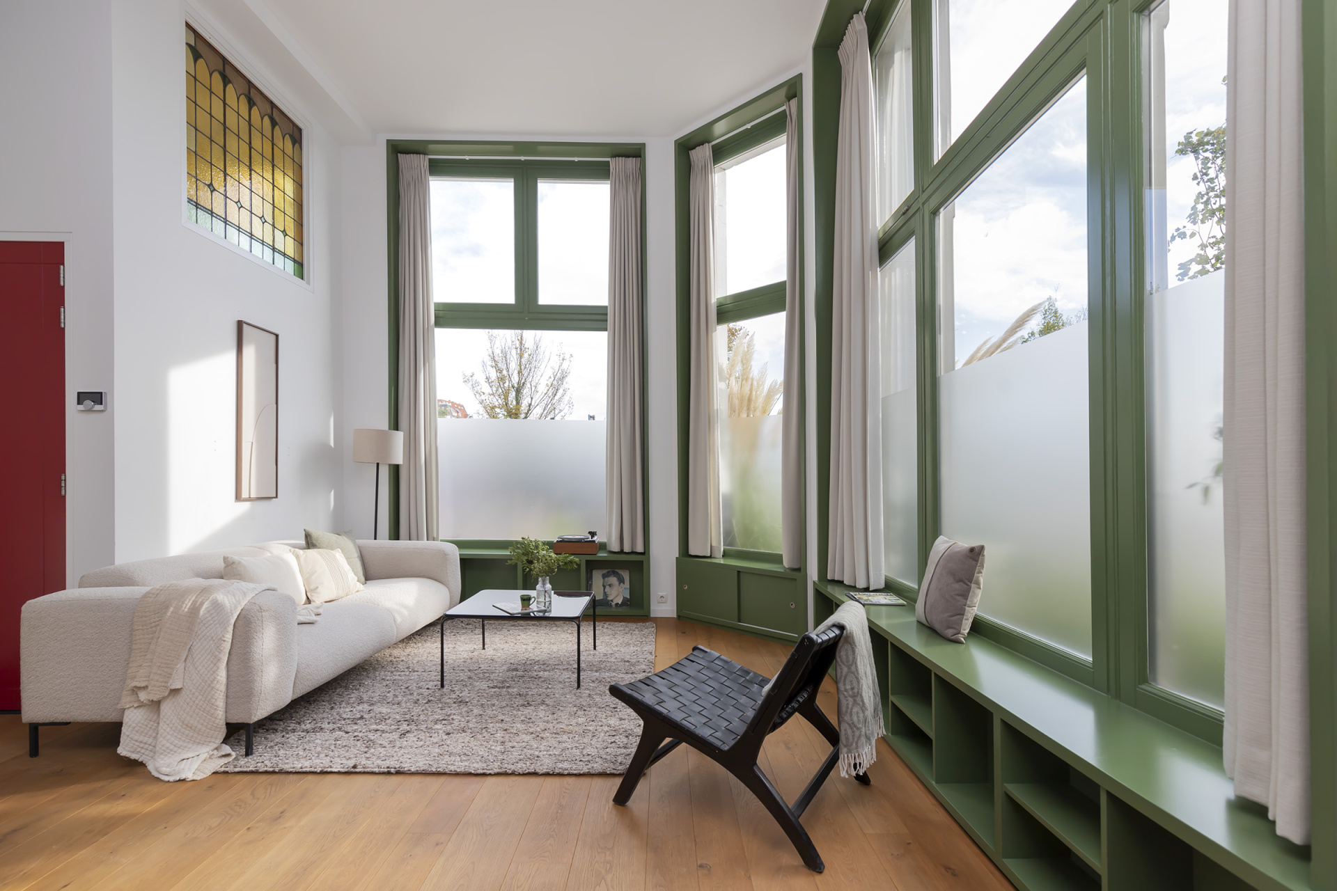 Hoge plafonds en grote raampartijen met veel lichtinval