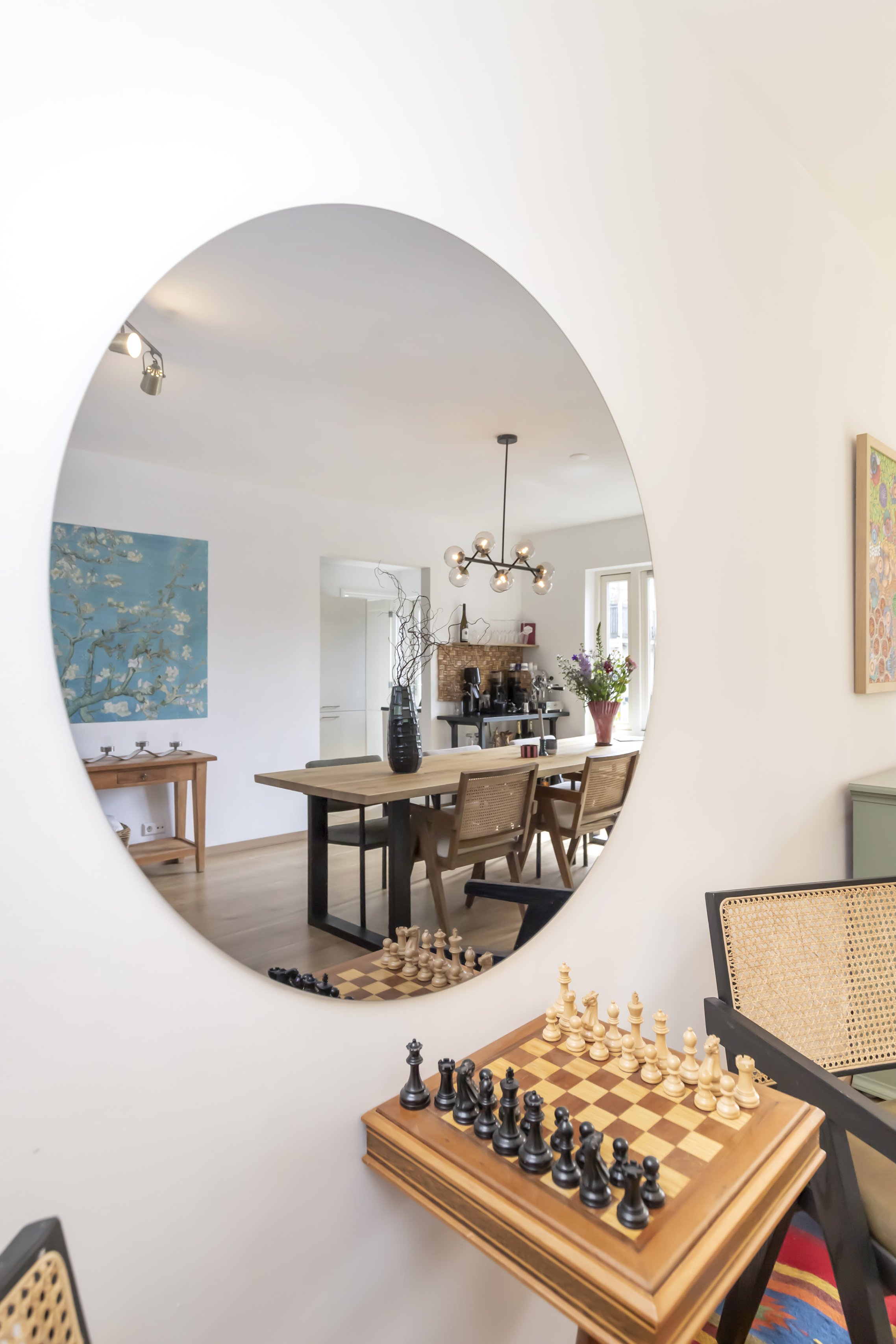 Een favoriet van de huidige bewoners: in de brede vensterbank van de zitkamer zitten en naar de voorbijgaande (roei)boten kijken.