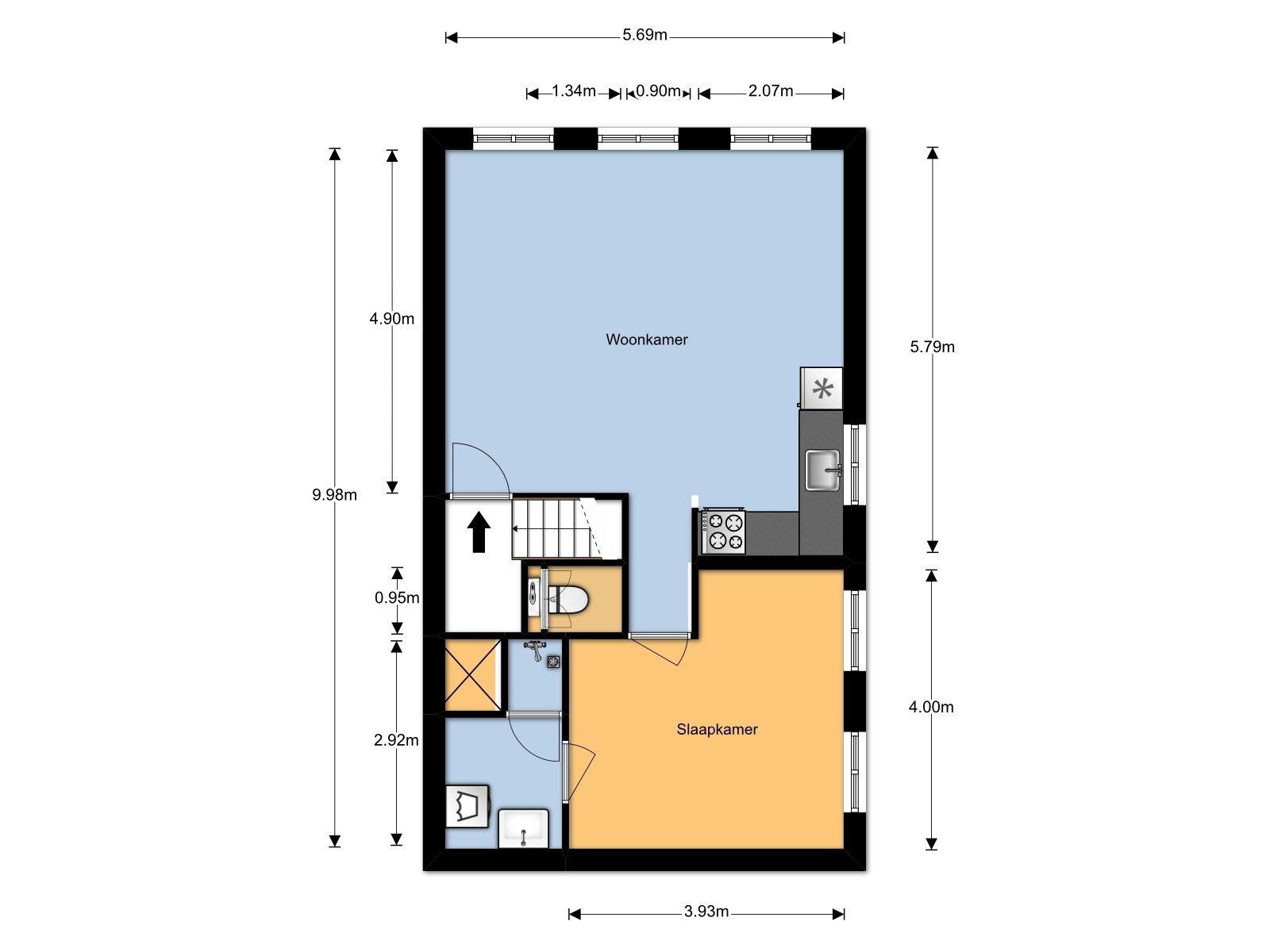 -Keuken voorzien van, afwasmachine, ijskast, vriezer, inductiekookplaat, afzuigkap