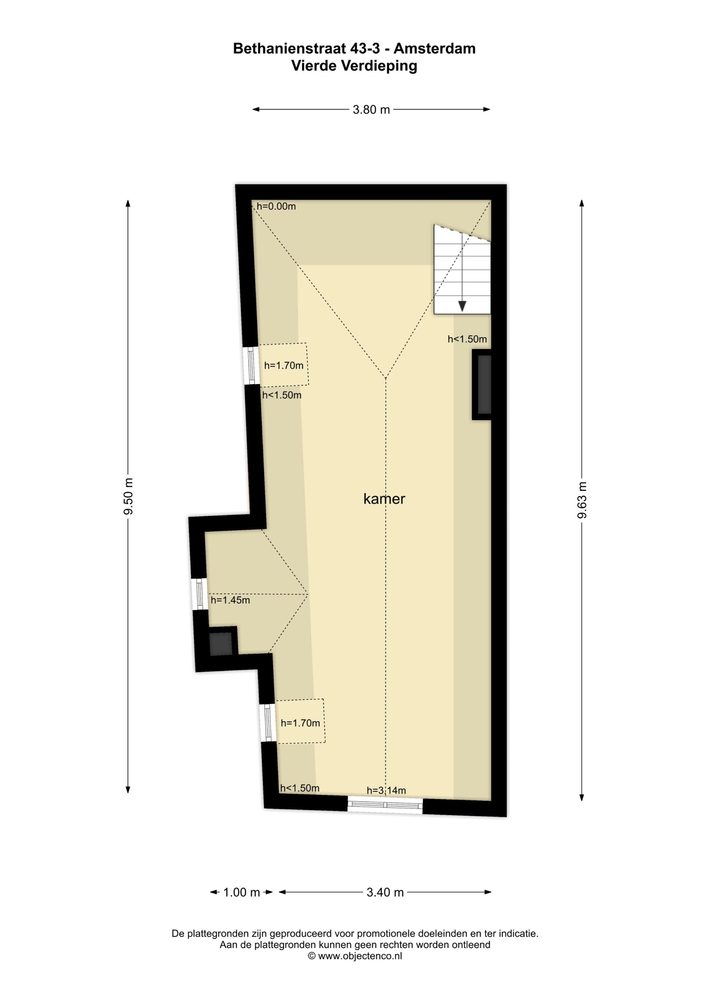 Op de vierde verdieping is een ruime slaapkamer met berging.