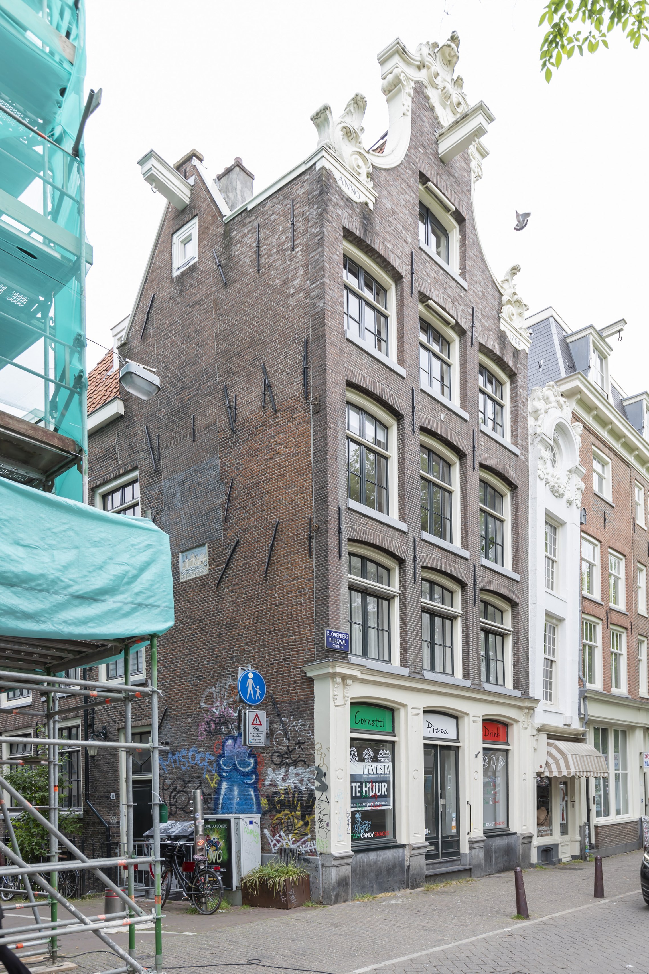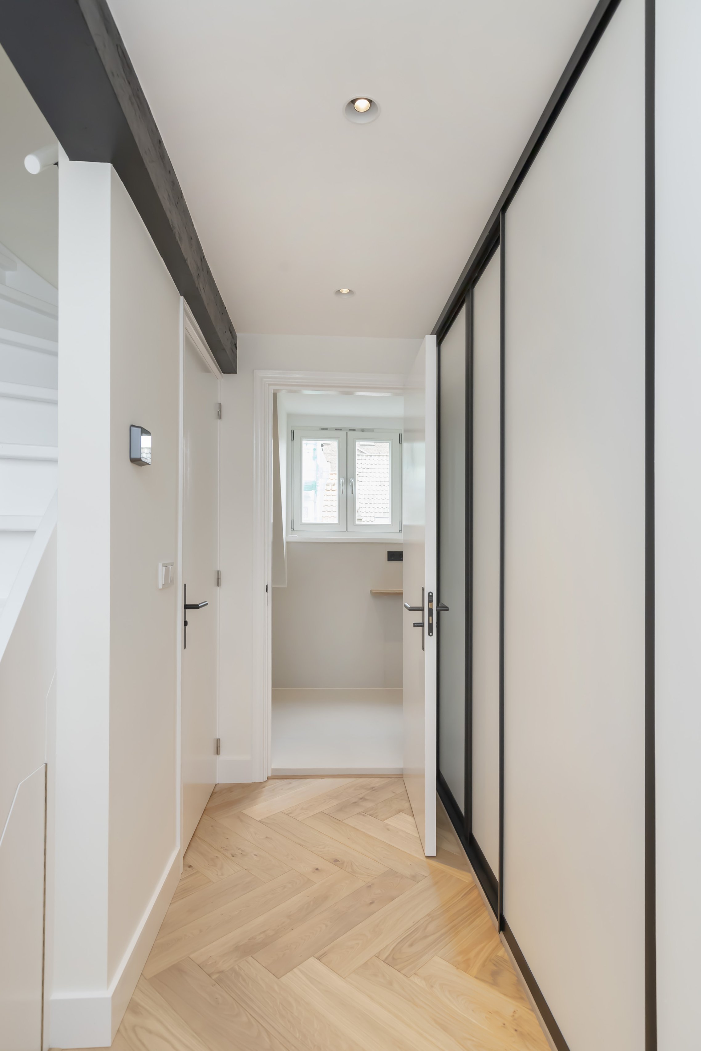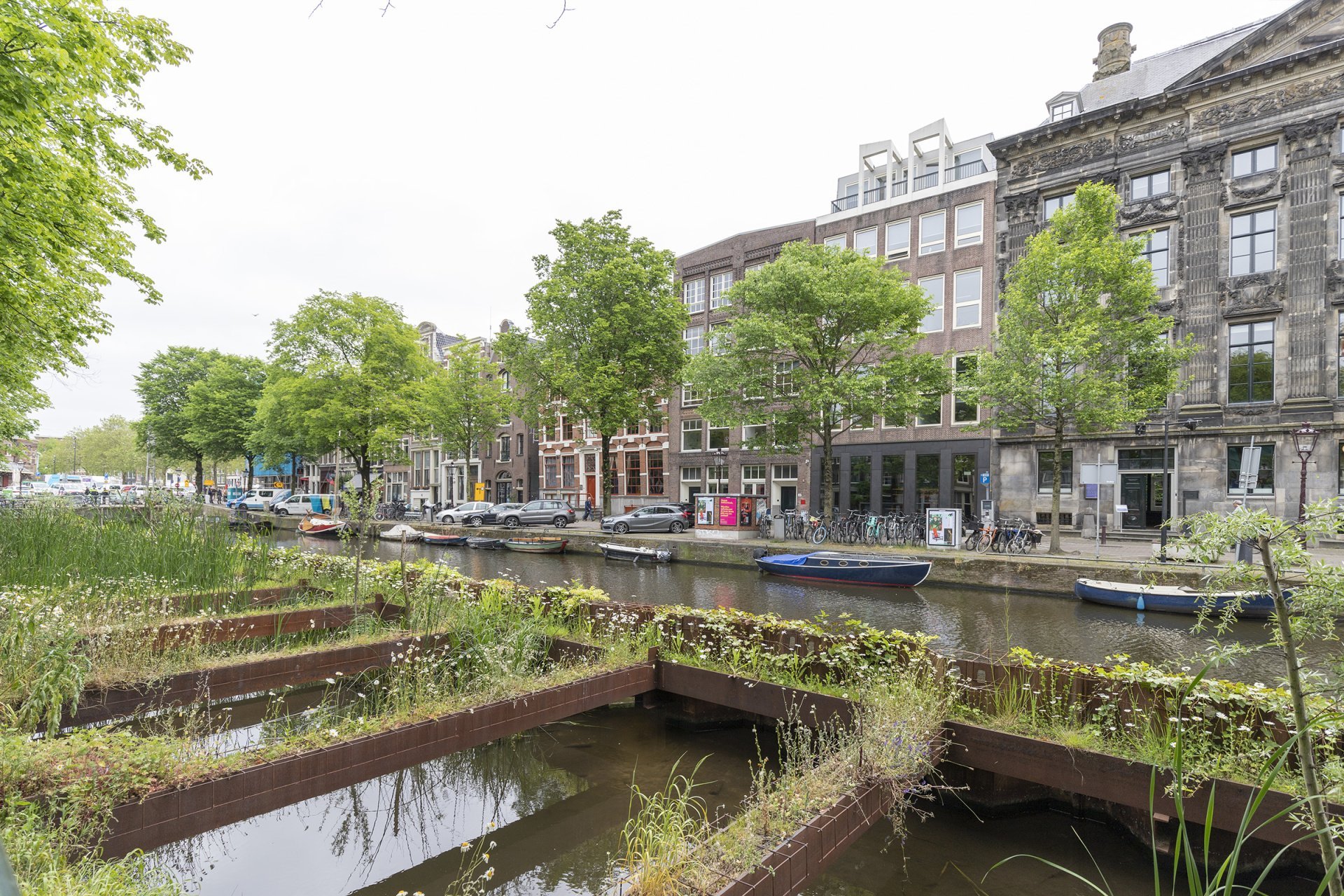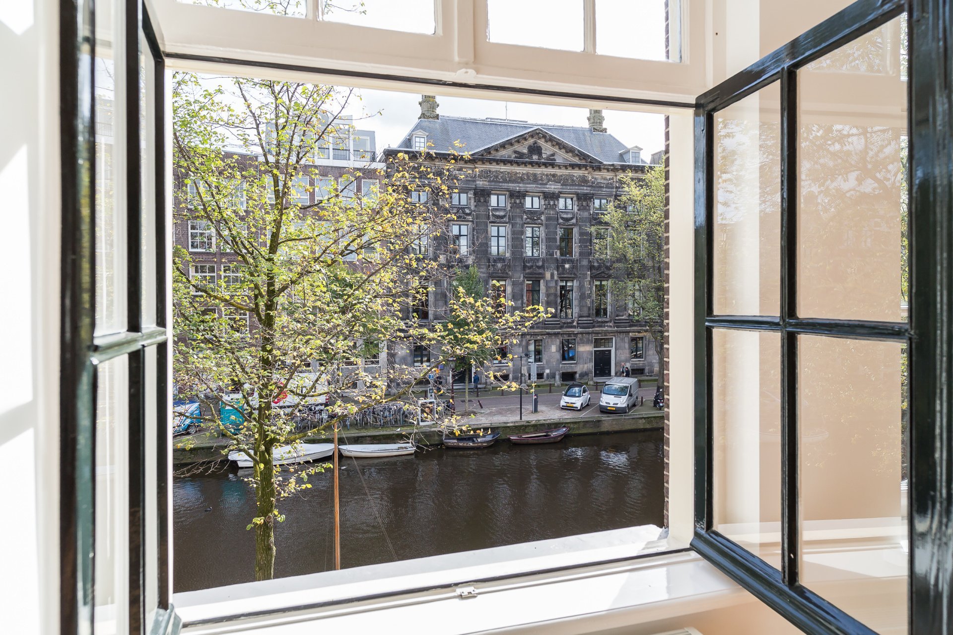 Het entree is op de tweede verdieping vanwaar een trap is naar hal met wc en fonteintje. De zitkamer met een mooi Amsterdams uitzicht op monumentale gebouwen en de gracht is 3 ramen breed en heeft veel lichtinval door o.a. ook ramen aan de zijgevels. Er is een open keuken, voorzien van luxe inbouwapparatuur. In de gang naar de badkamer en wc is een grote kast met schuifdeuren die voorzien is van de wasmachine aansluiting. De fraaie sfeervolle badkamer met wastafelmeubel, inloopdouche en design radiator is aan de achterzijde op de 3e verdieping.