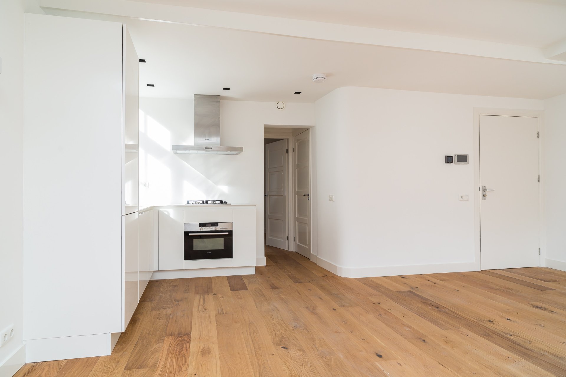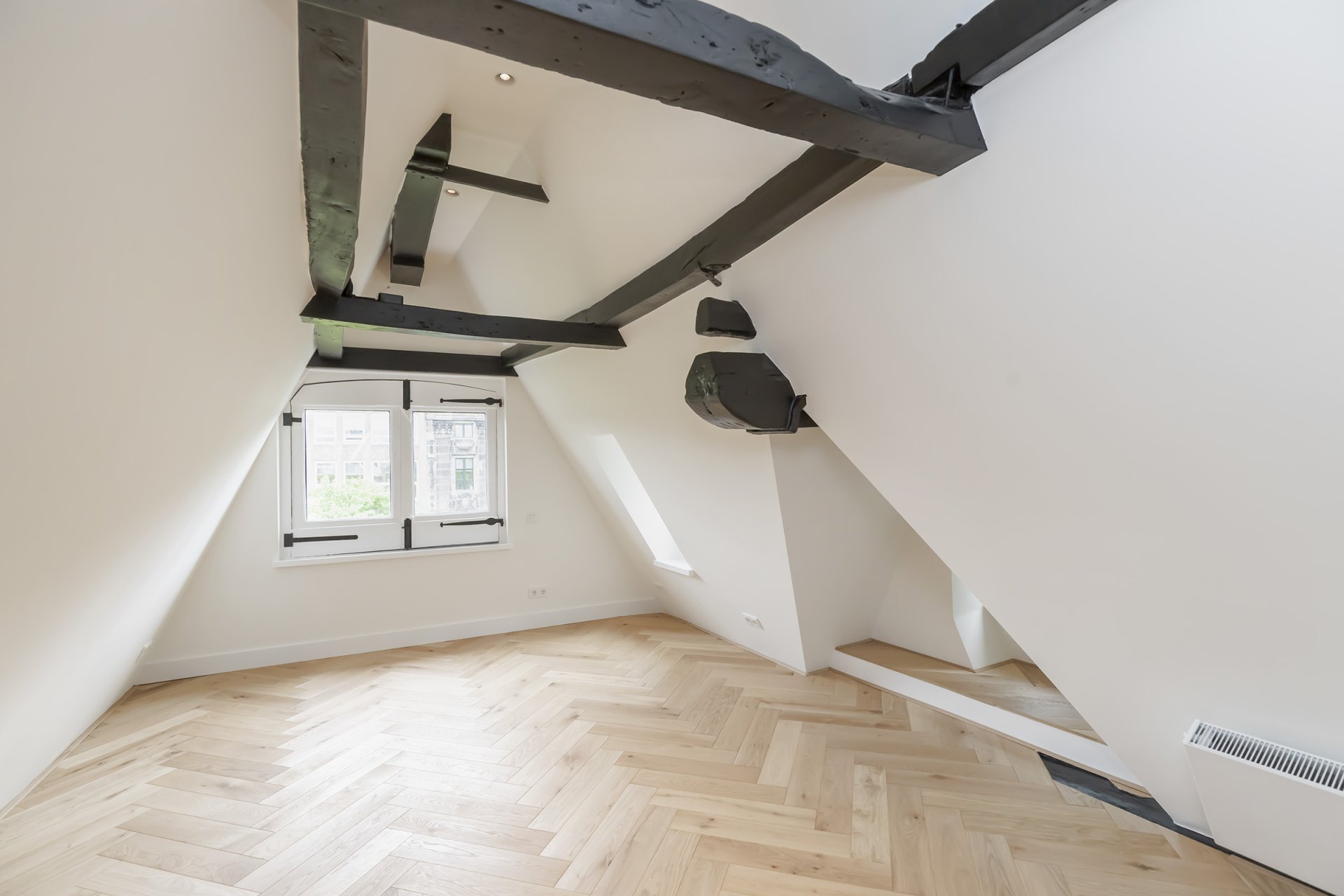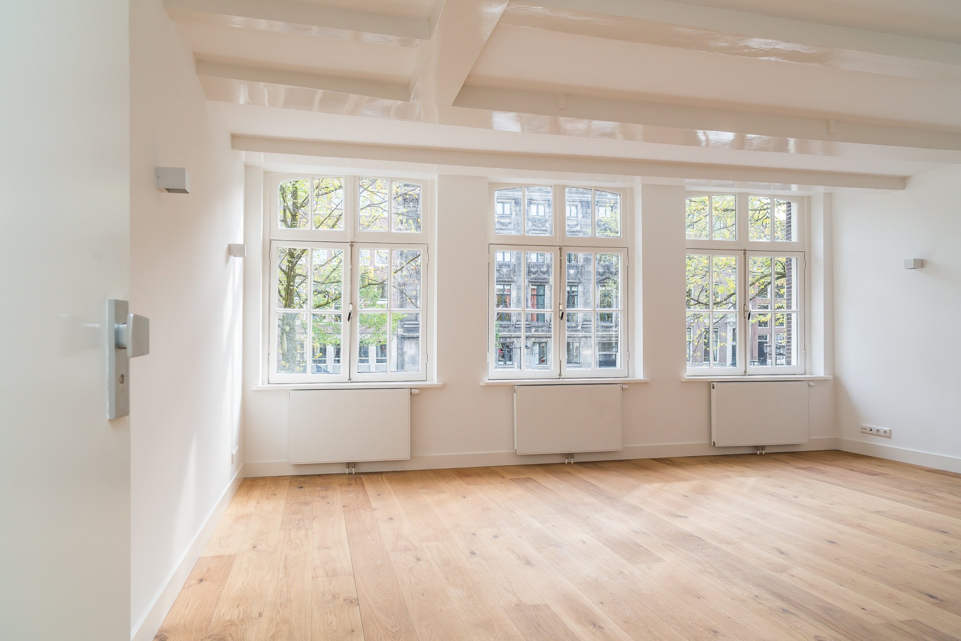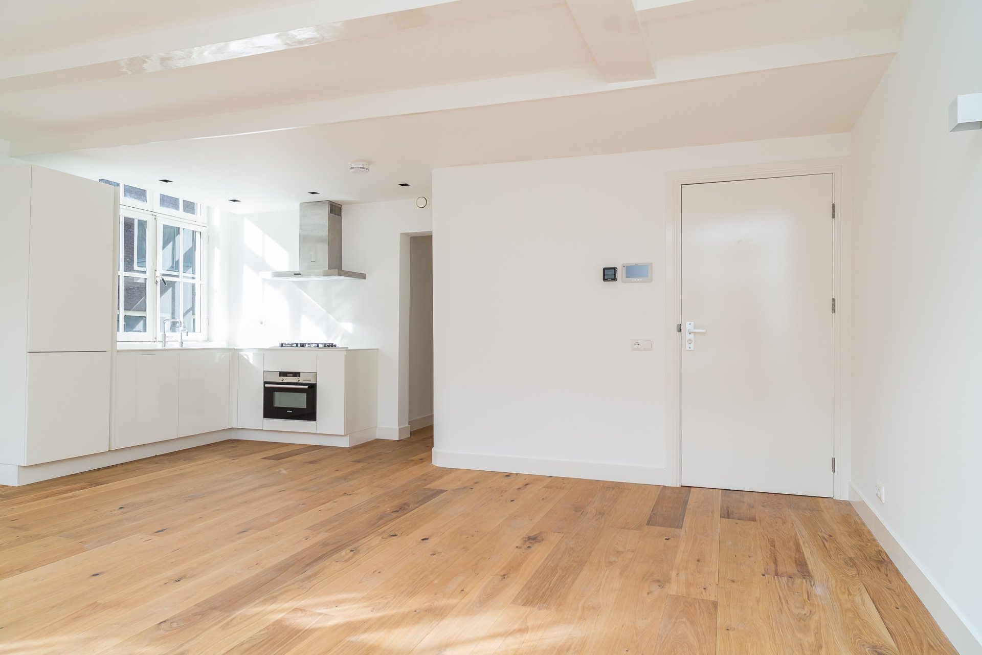 Het entree is op de tweede verdieping vanwaar een trap is naar hal met wc en fonteintje. De zitkamer met een mooi Amsterdams uitzicht op monumentale gebouwen en de gracht is 3 ramen breed en heeft veel lichtinval door o.a. ook ramen aan de zijgevels. Er is een open keuken, voorzien van luxe inbouwapparatuur. In de gang naar de badkamer en wc is een grote kast met schuifdeuren die voorzien is van de wasmachine aansluiting. De fraaie sfeervolle badkamer met wastafelmeubel, inloopdouche en design radiator is aan de achterzijde op de 3e verdieping.