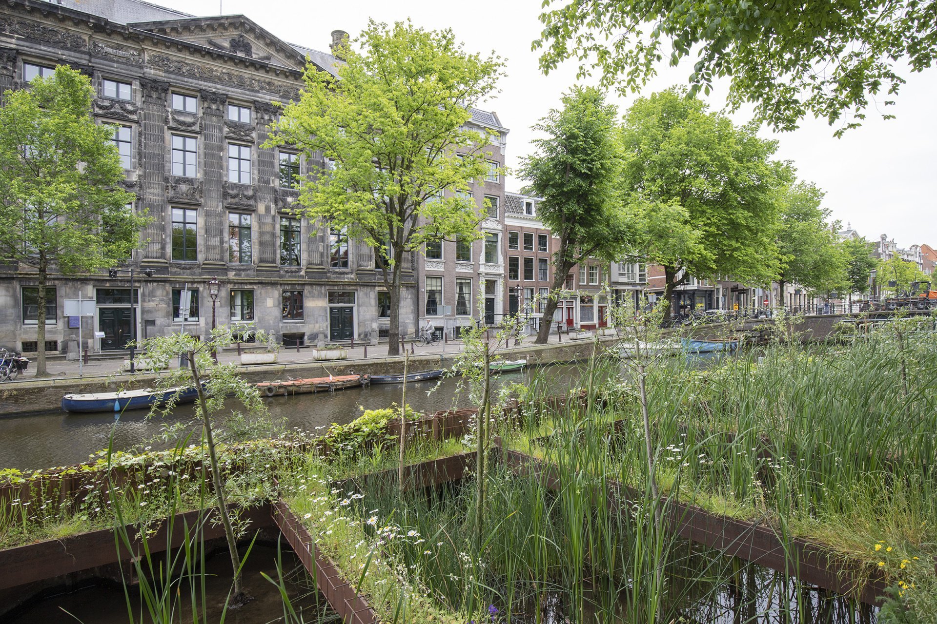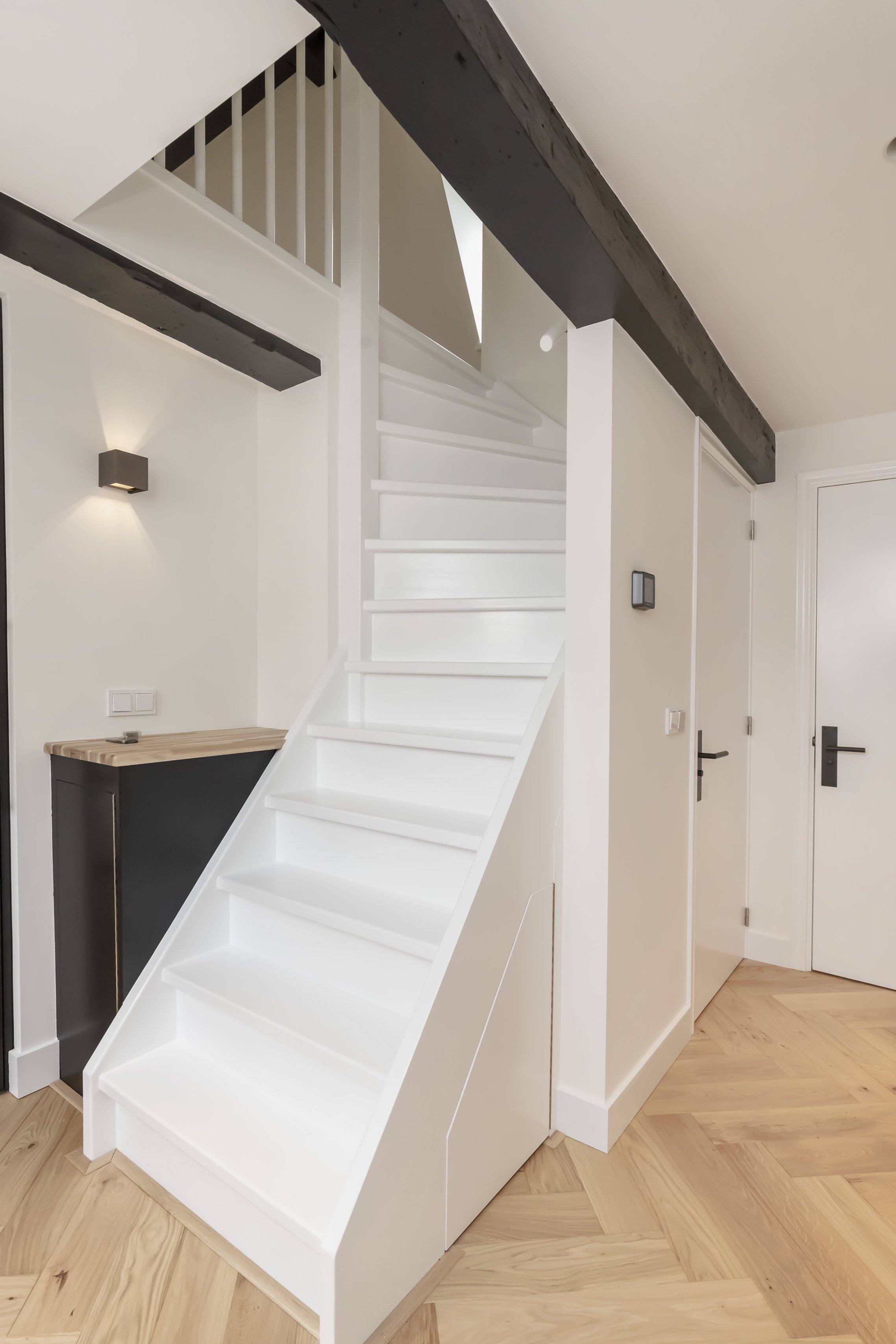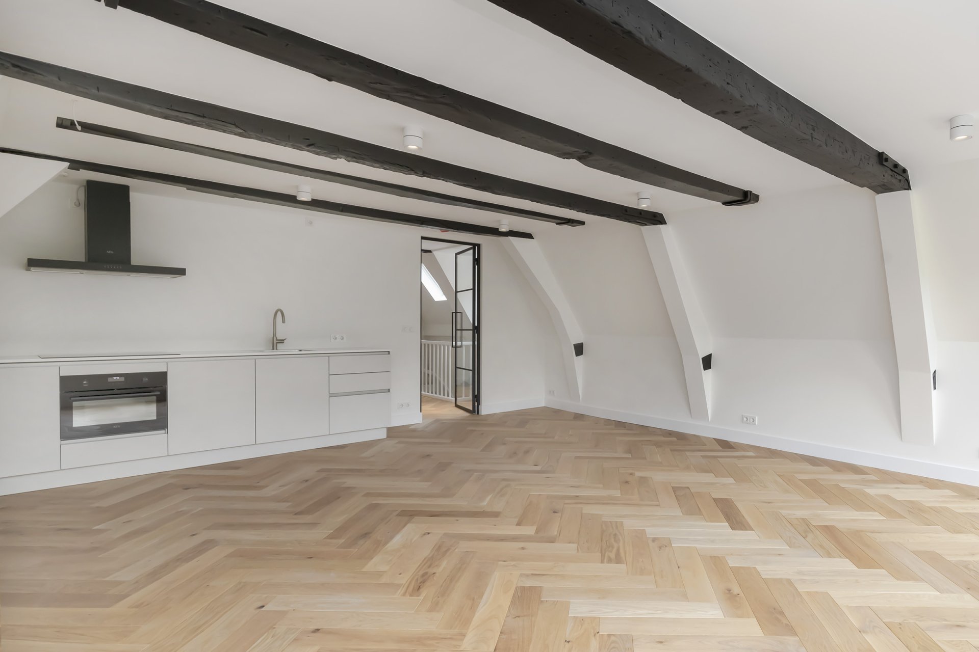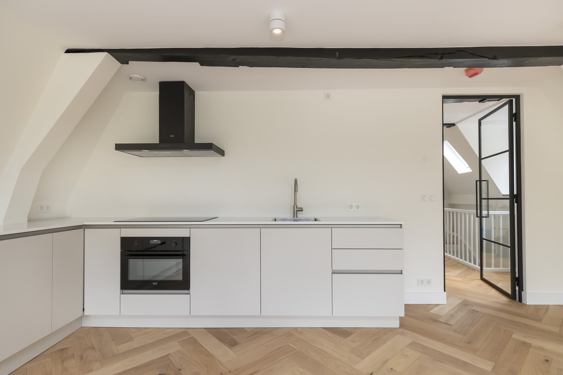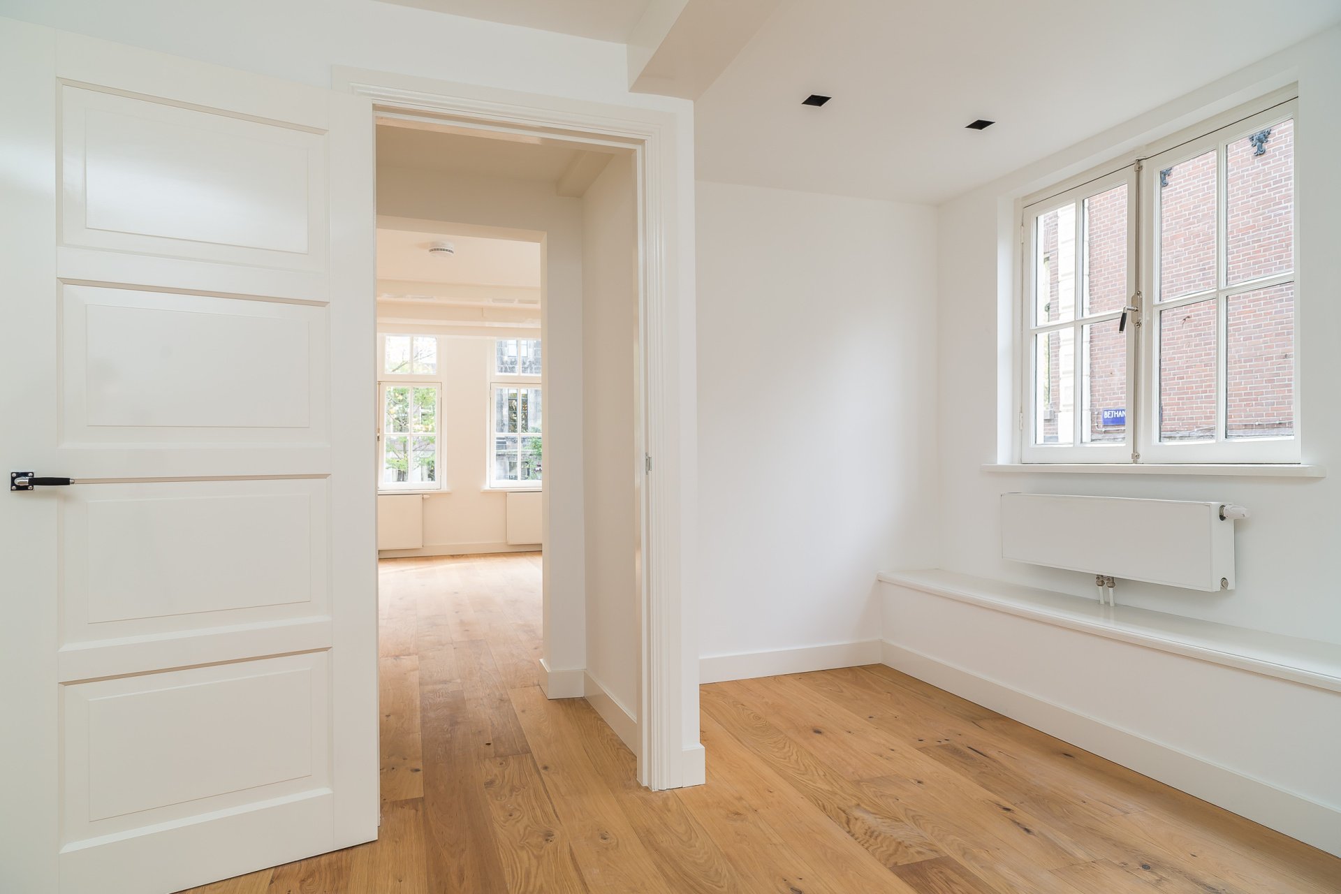 Het entree is op de tweede verdieping vanwaar een trap is naar hal met wc en fonteintje. De zitkamer met een mooi Amsterdams uitzicht op monumentale gebouwen en de gracht is 3 ramen breed en heeft veel lichtinval door o.a. ook ramen aan de zijgevels. Er is een open keuken, voorzien van luxe inbouwapparatuur. In de gang naar de badkamer en wc is een grote kast met schuifdeuren die voorzien is van de wasmachine aansluiting. De fraaie sfeervolle badkamer met wastafelmeubel, inloopdouche en design radiator is aan de achterzijde op de 3e verdieping.