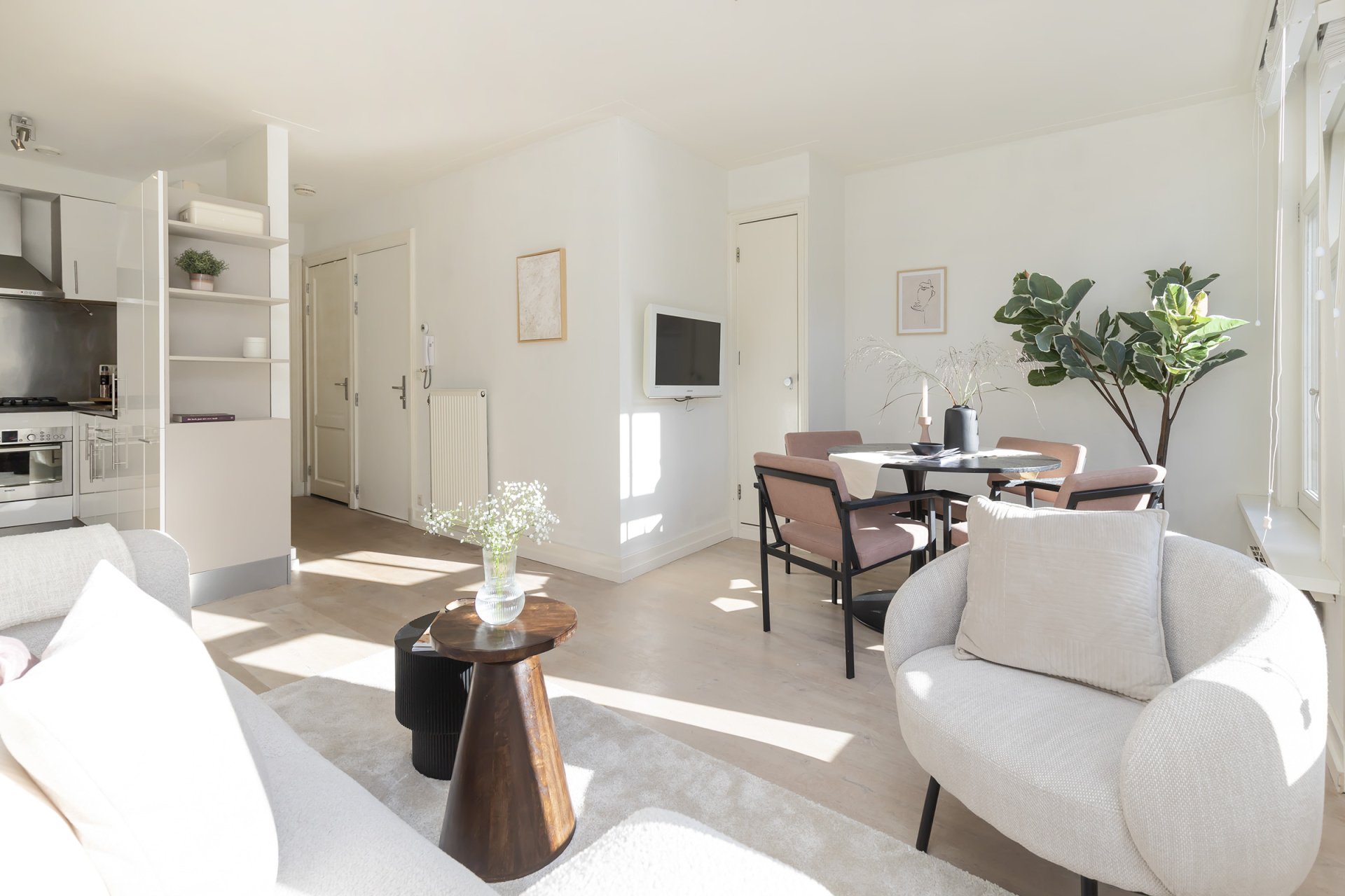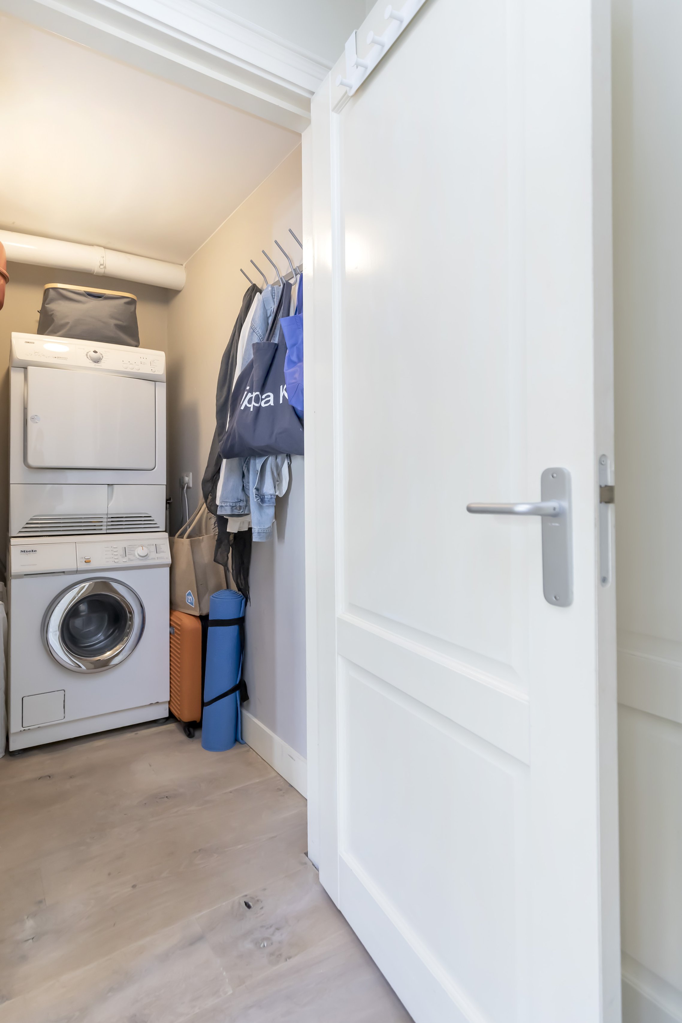 De entree is op de tweede verdieping: entree, L vormige woonkamer (met balkon) aan de voorzijde met open keuken voorzien van diverse inbouwapparatuur, toilet met vaste wastafel, wasmachine ruimte c.q. berging. Ruime slaapkamer aan de achterzijde met toegang tot het extra diepe balkon aan de achterzijde. Vanuit de slaapkamer heb je rechtstreeks toegang tot de ruime badkamer. De badkamer is voorzien van een ligbad, wastafel en een design radiator. Door het gehele appartement ligt een fraaie houten parket vloer. Het appartement kenmerkt zich doordat het een zeer licht appartement is en vanwege zijn ligging. Die is uniek midden in het bruisende leven en toch ook weer heel rustig.