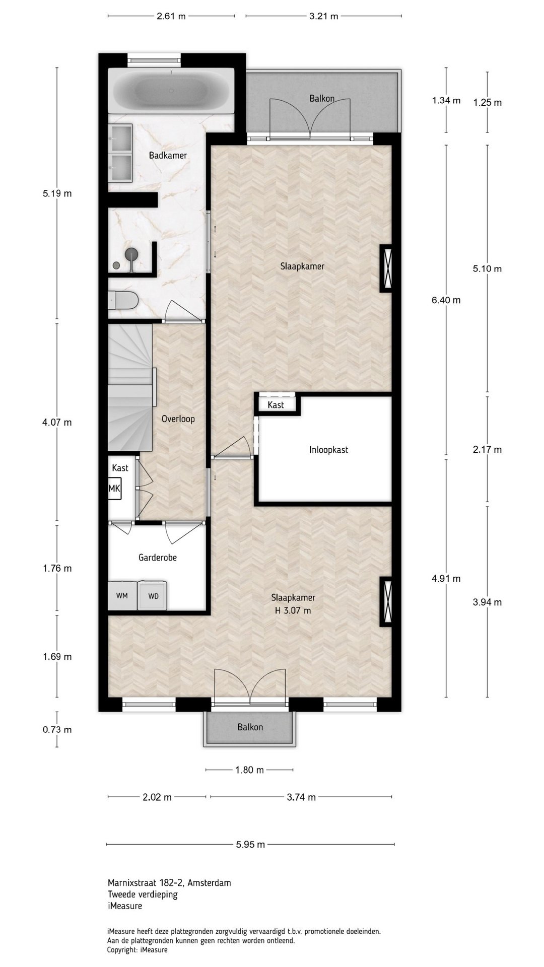 Je betreedt de woning op de tweede verdieping. Hier bevinden zich twee ruime slaapkamers, elk met een eigen balkon – perfect voor een moment in de ochtendzon of de laatste avondstralen. De royale master bedroom aan de achterzijde beschikt over een grote inloopkast en directe toegang tot de moderne badkamer. Deze is uitgerust met een ligbad, dubbele wastafel, inloopdouche én heeft ook toegang vanaf de overloop.
