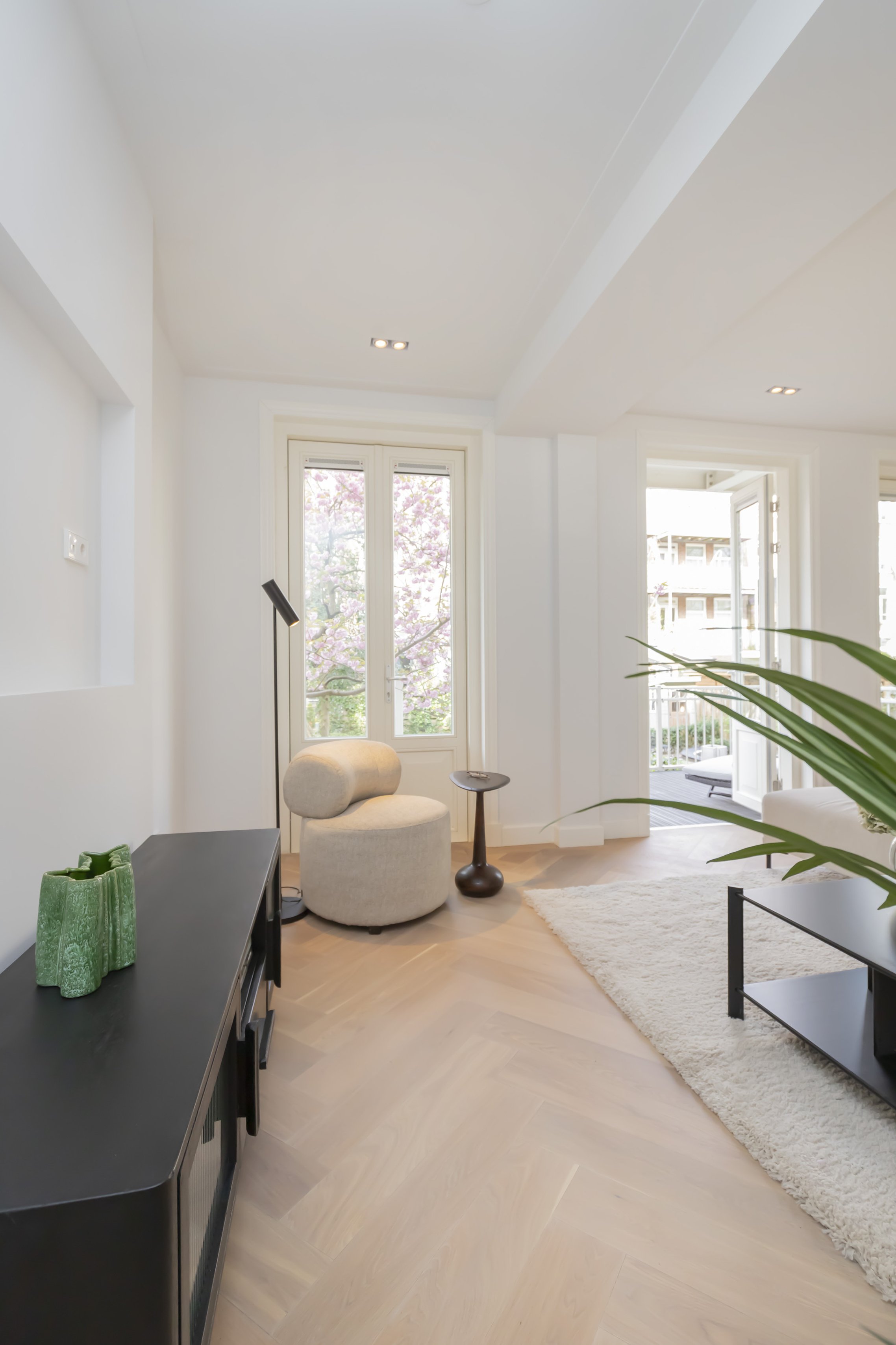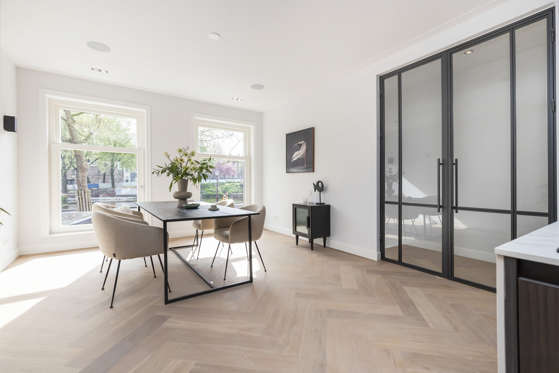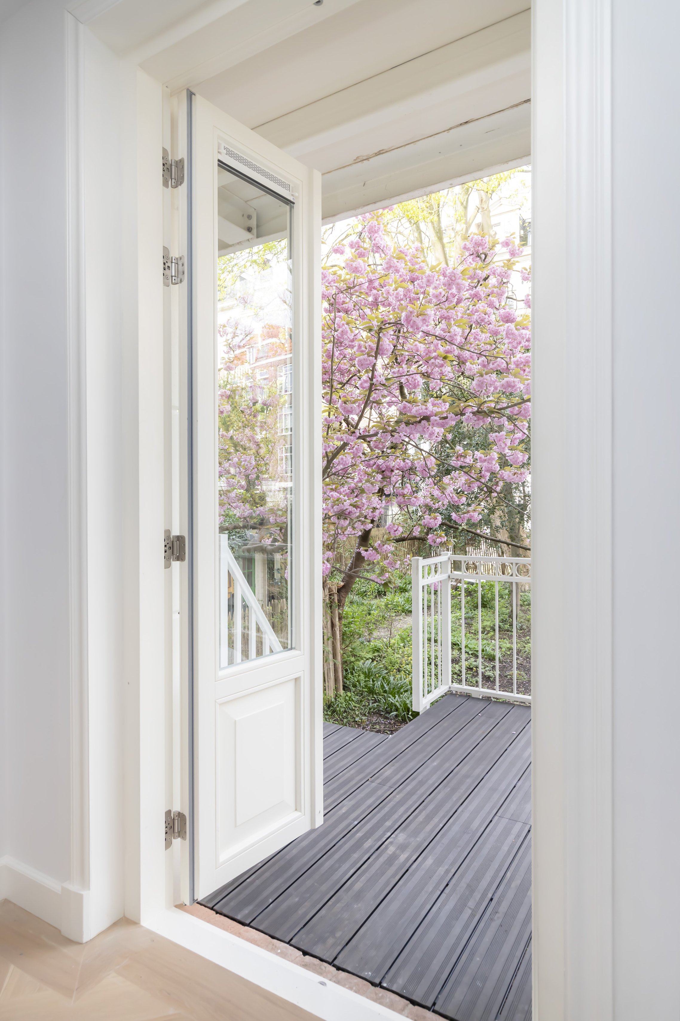 Totaal gerenoveerd dubbel benedenhuis van ca. 141m2 met heerlijke diepe tuin gelegen op het mooiste plekje van de Nassaukade.