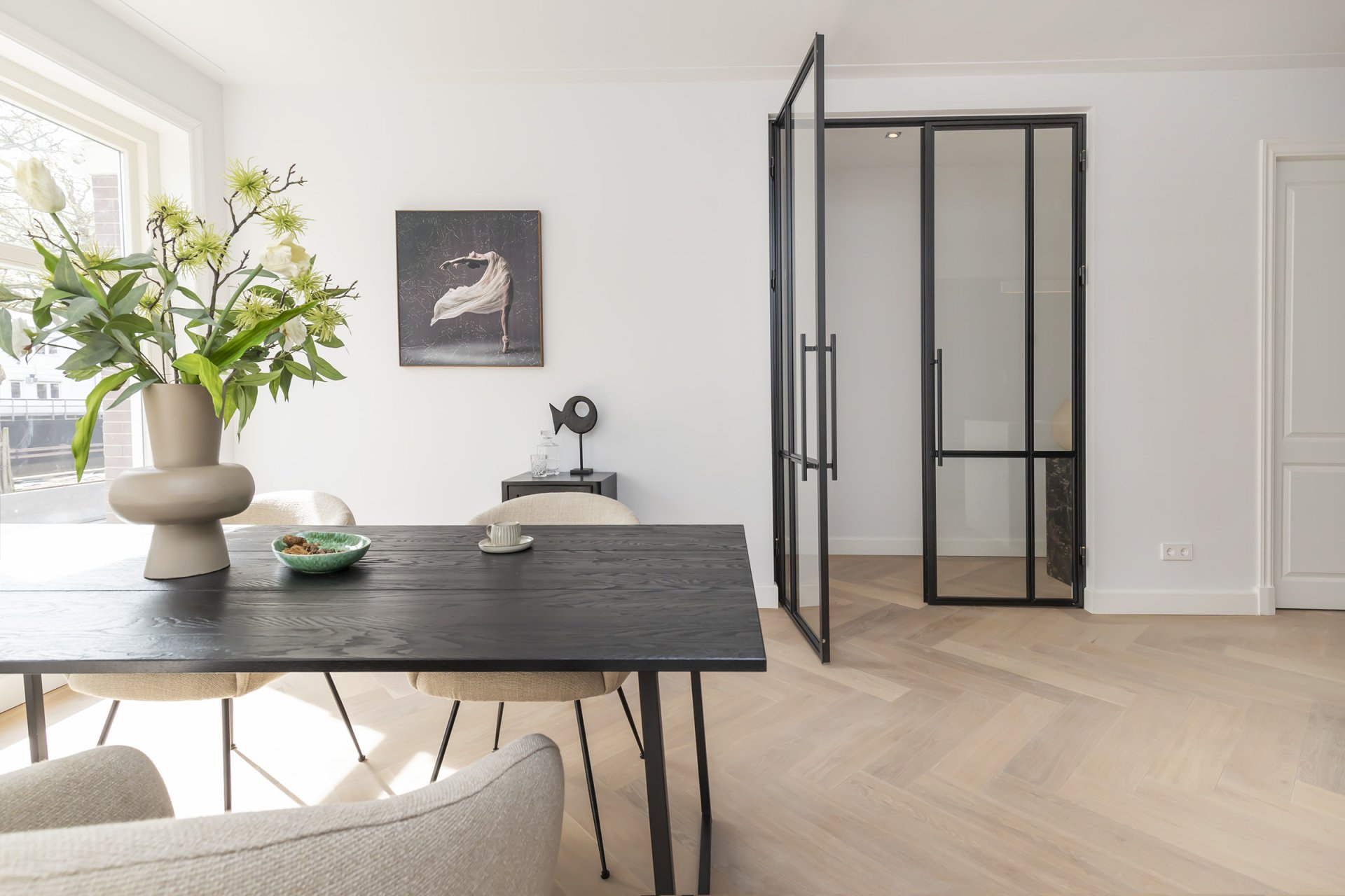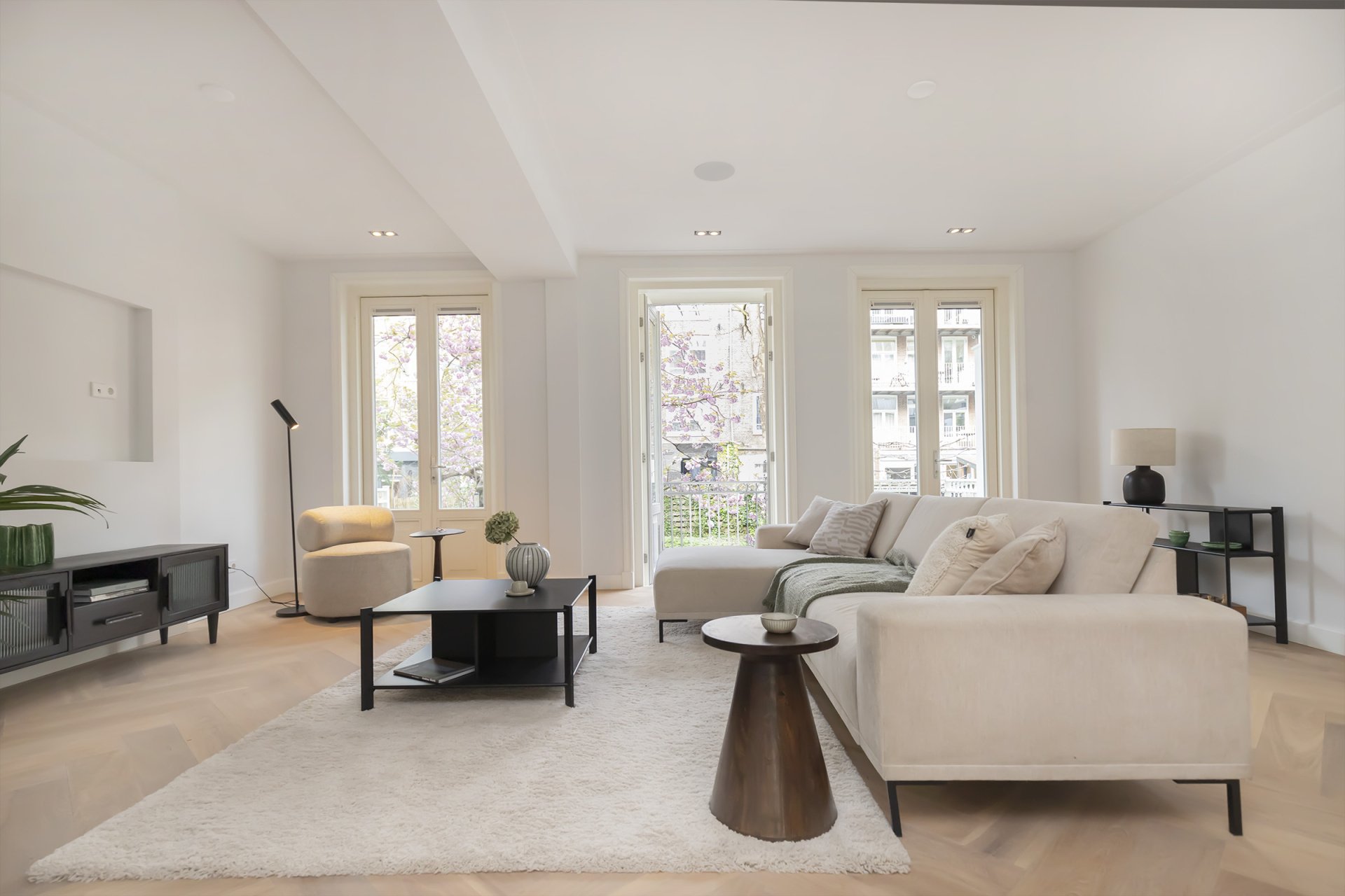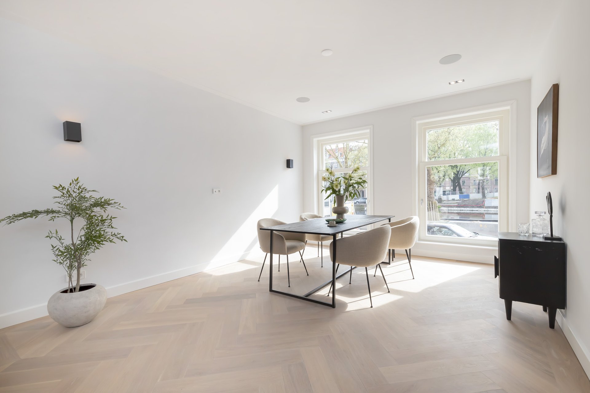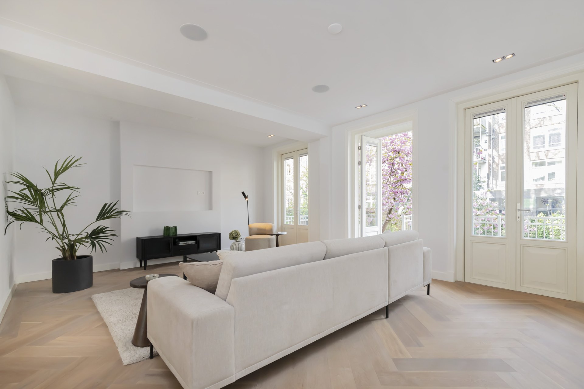 Totaal gerenoveerd dubbel benedenhuis van ca. 141m2 met heerlijke diepe tuin gelegen op het mooiste plekje van de Nassaukade.