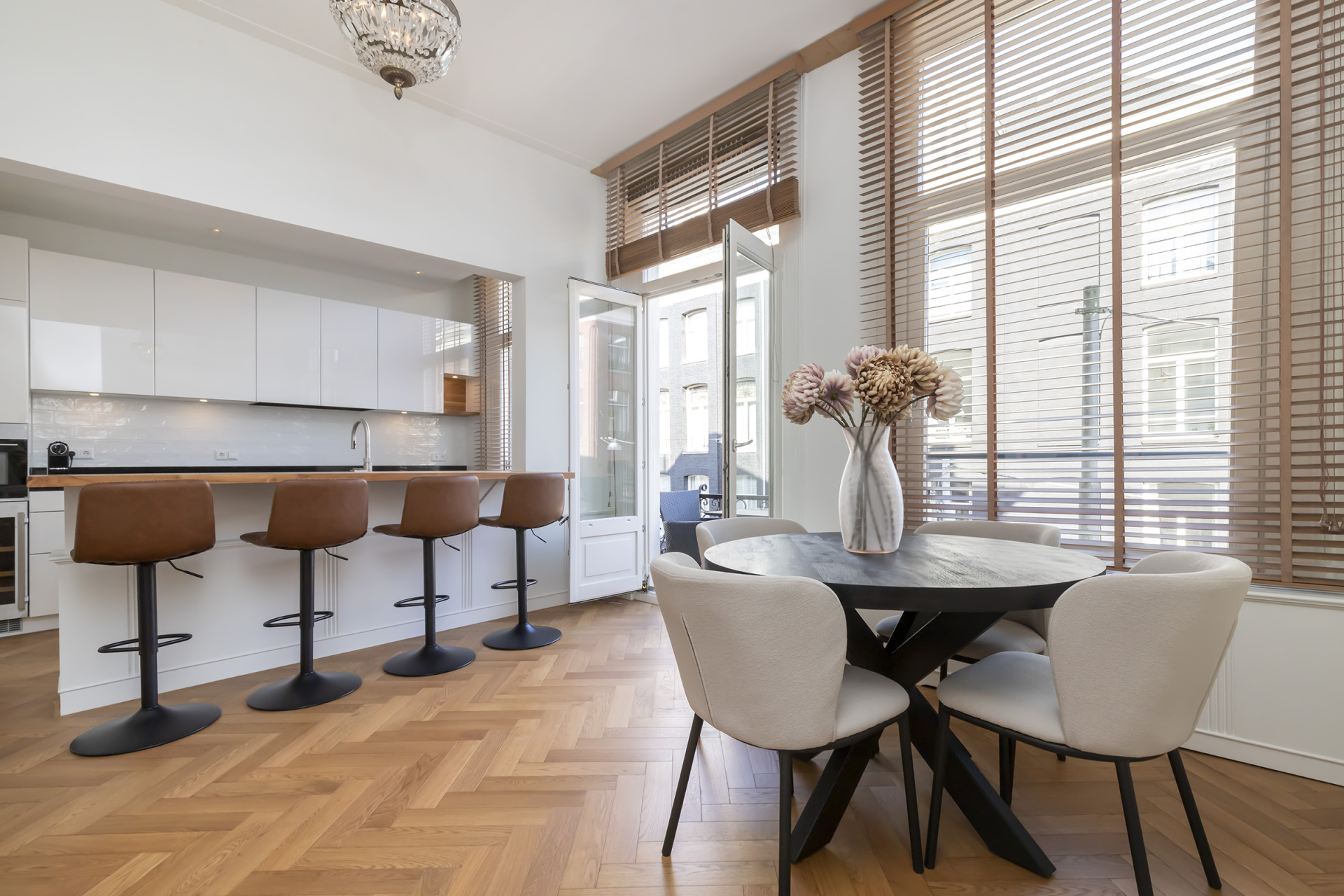 Keuken: Halfopen en zeer compleet uitgerust met o.a. een Boretti 5-pits gasfornuis, wijnklimaatkast, koelkast met ijsmachine, combi-oven/magnetron, afzuigkap, vaatwasser, Quooker 3-in-1 kraan en gezellige bar. Aangrenzend een praktische wasruimte.