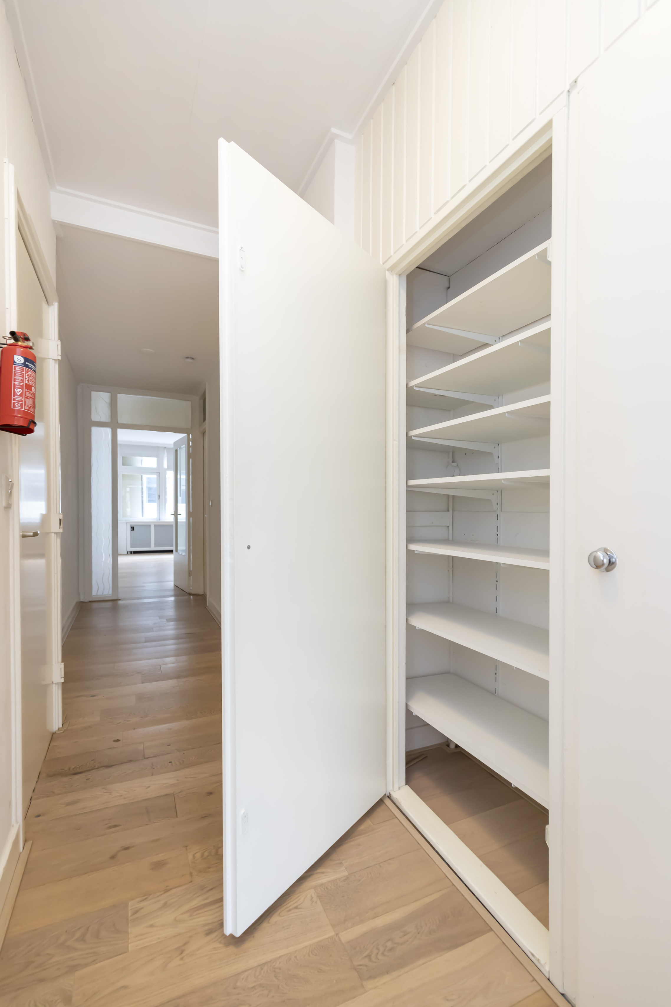 Binnen treft u aan de voorzijde een lichte woonkamer met uitzicht over het water. De ramen zorgen voor een prachtige lichtinval en geven het gevoel van ruimte en rust, midden in de stad.