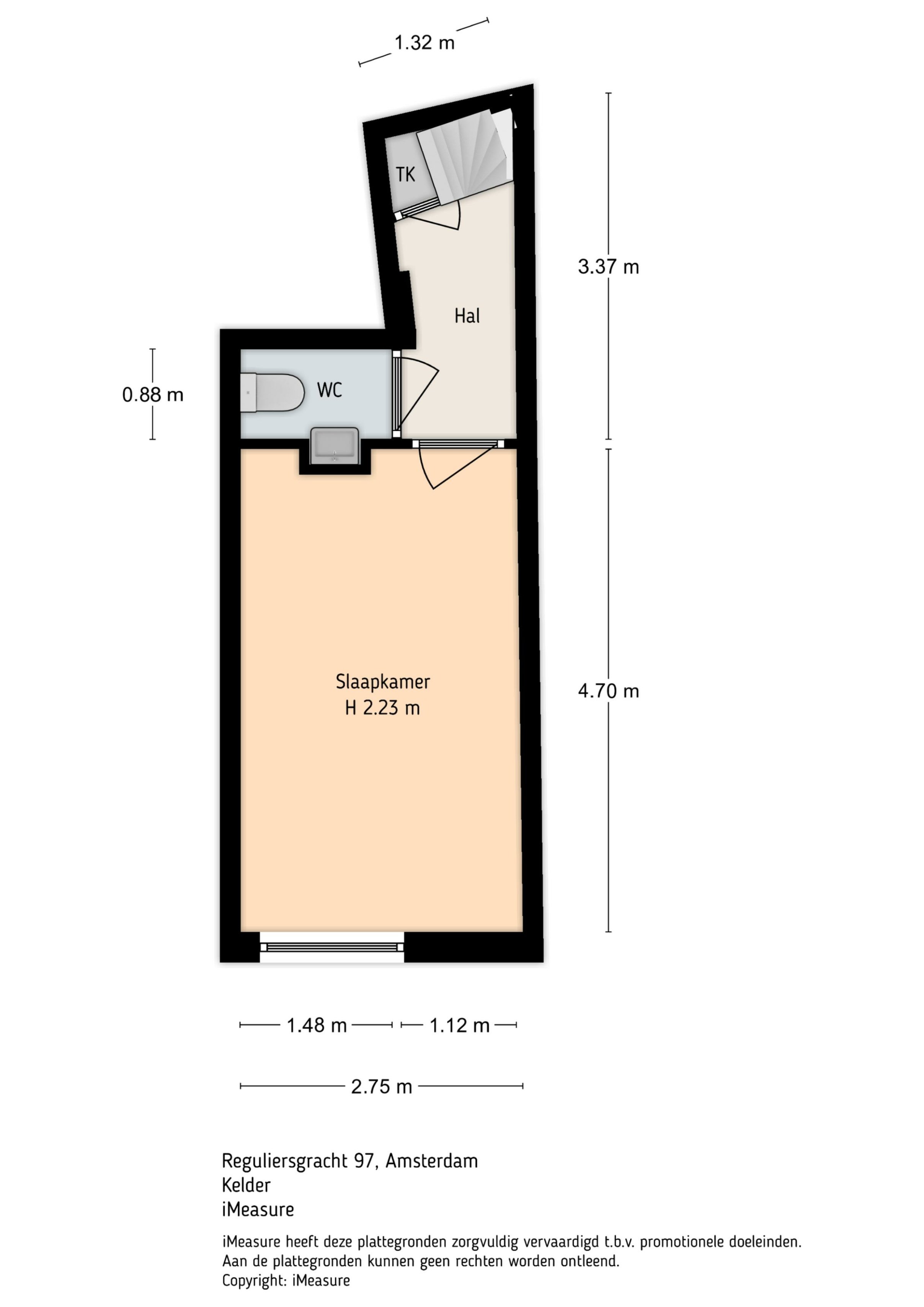 In het souterrain is een slaapkamer met inbouwkasten en een wc.