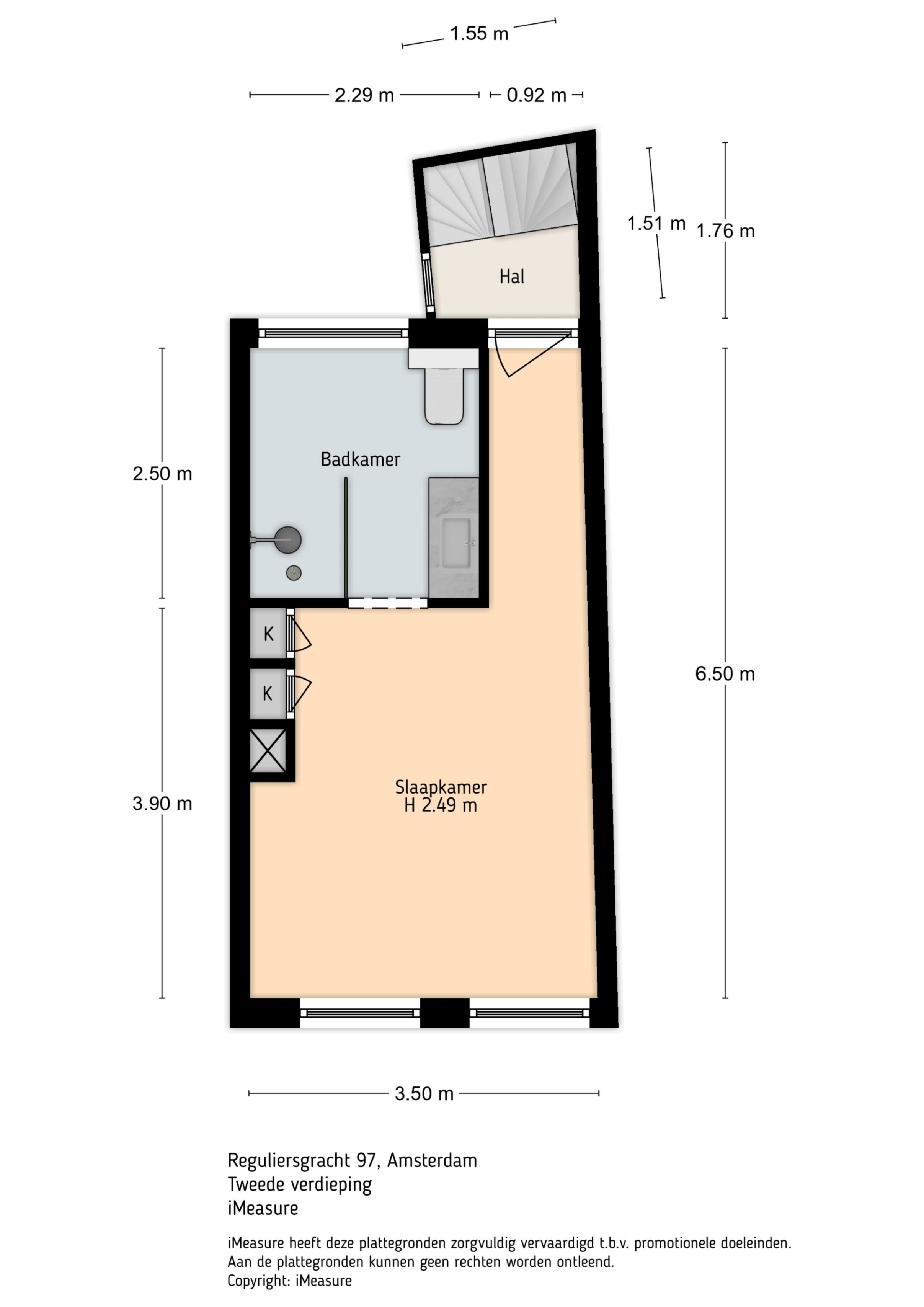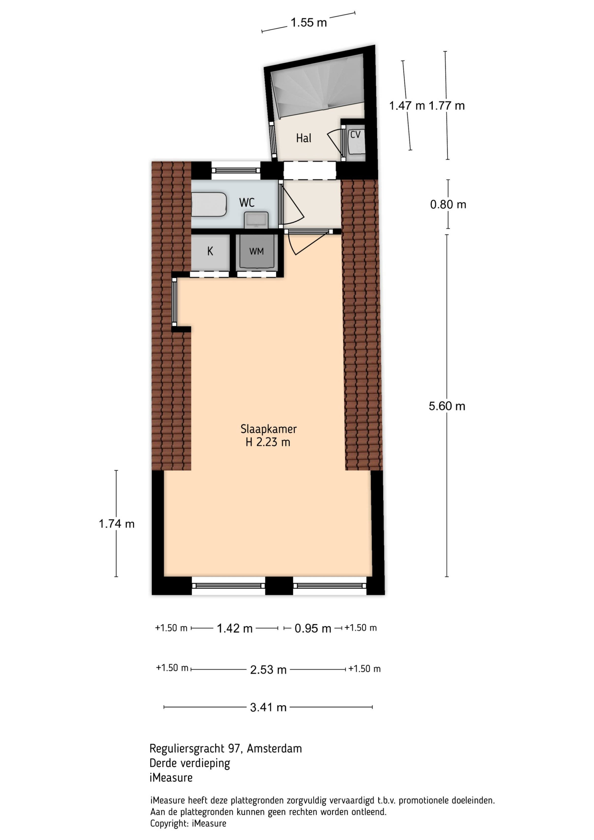 De derde verdieping is de kapverdieping met een slaapkamer, een wc, wasmachine kast en een kast met de centrale verwarming.