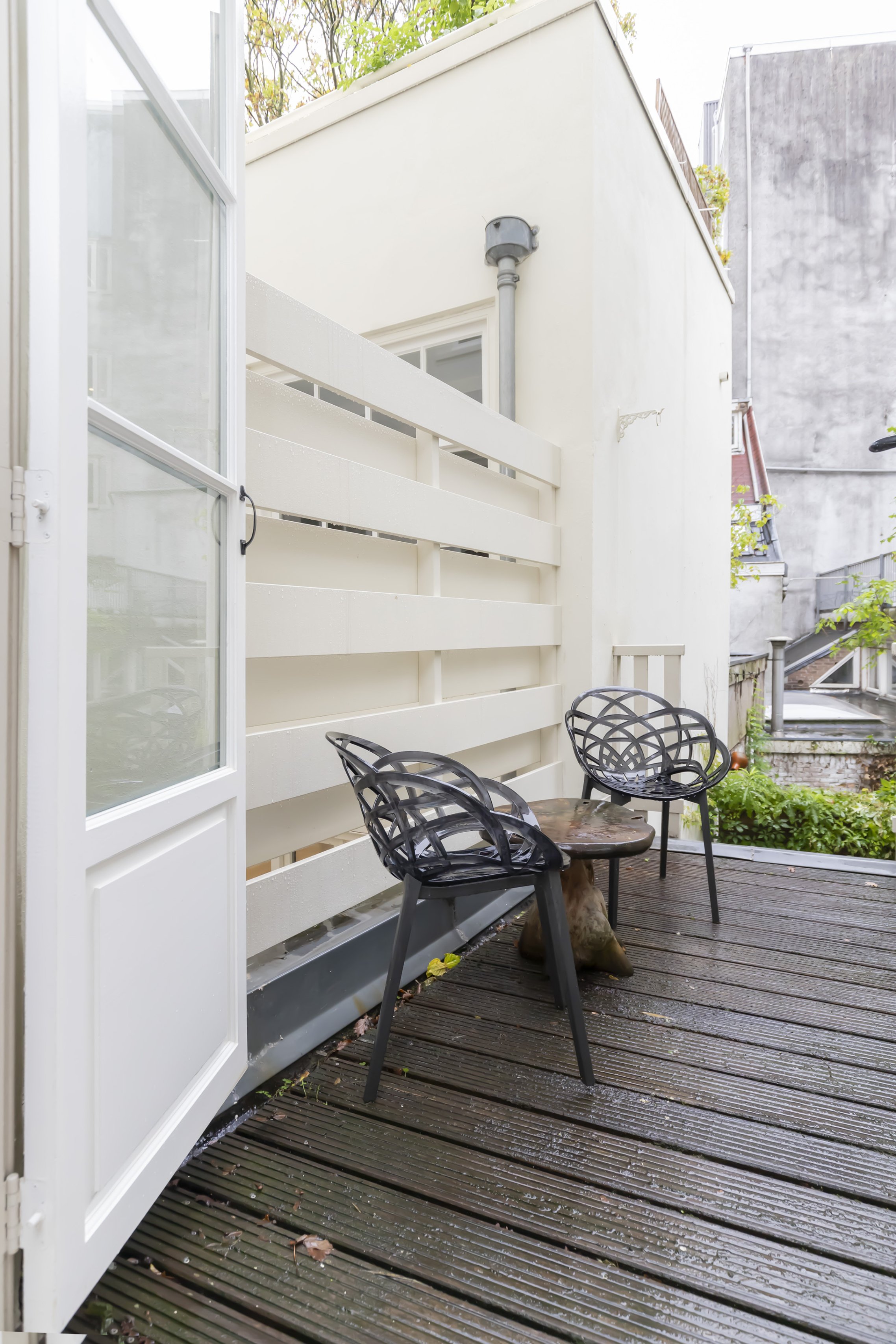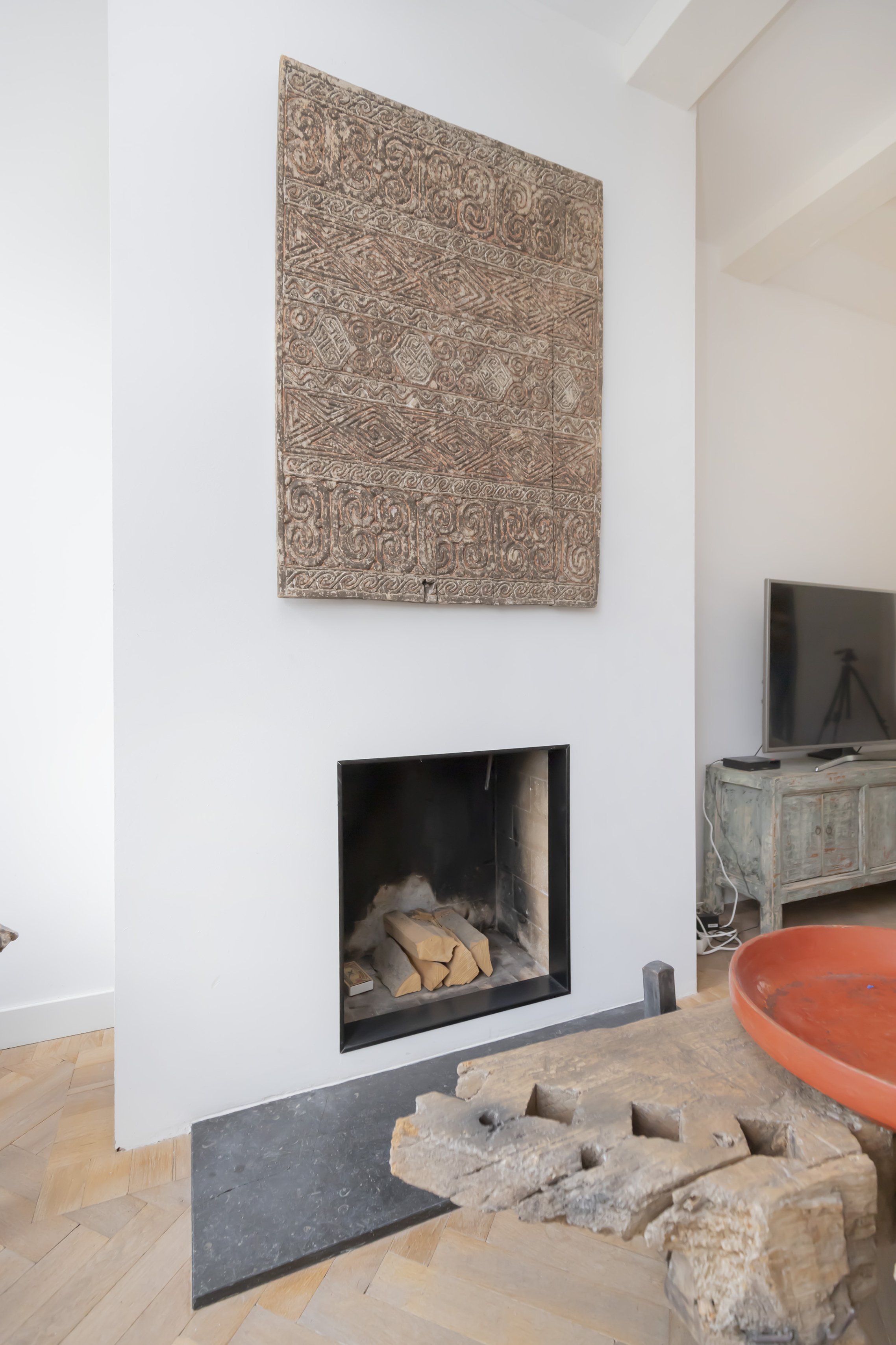 Op de eerste verdieping is de zitkamer met openhaard en de toegang tot het terras dat verdeeld is over 2 niveaus.