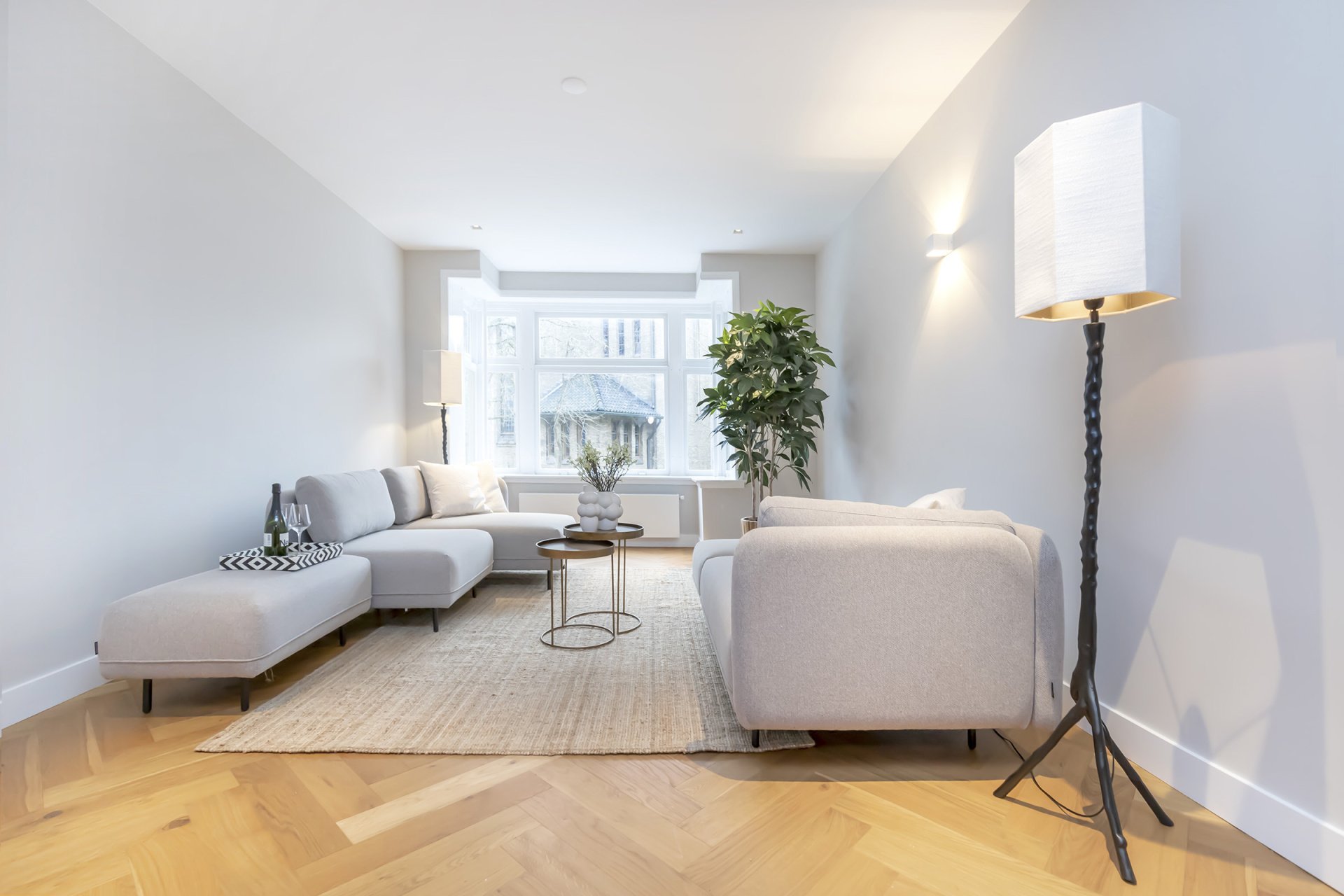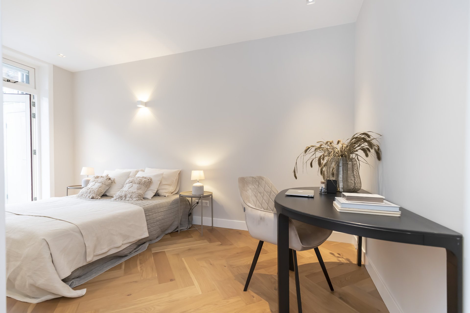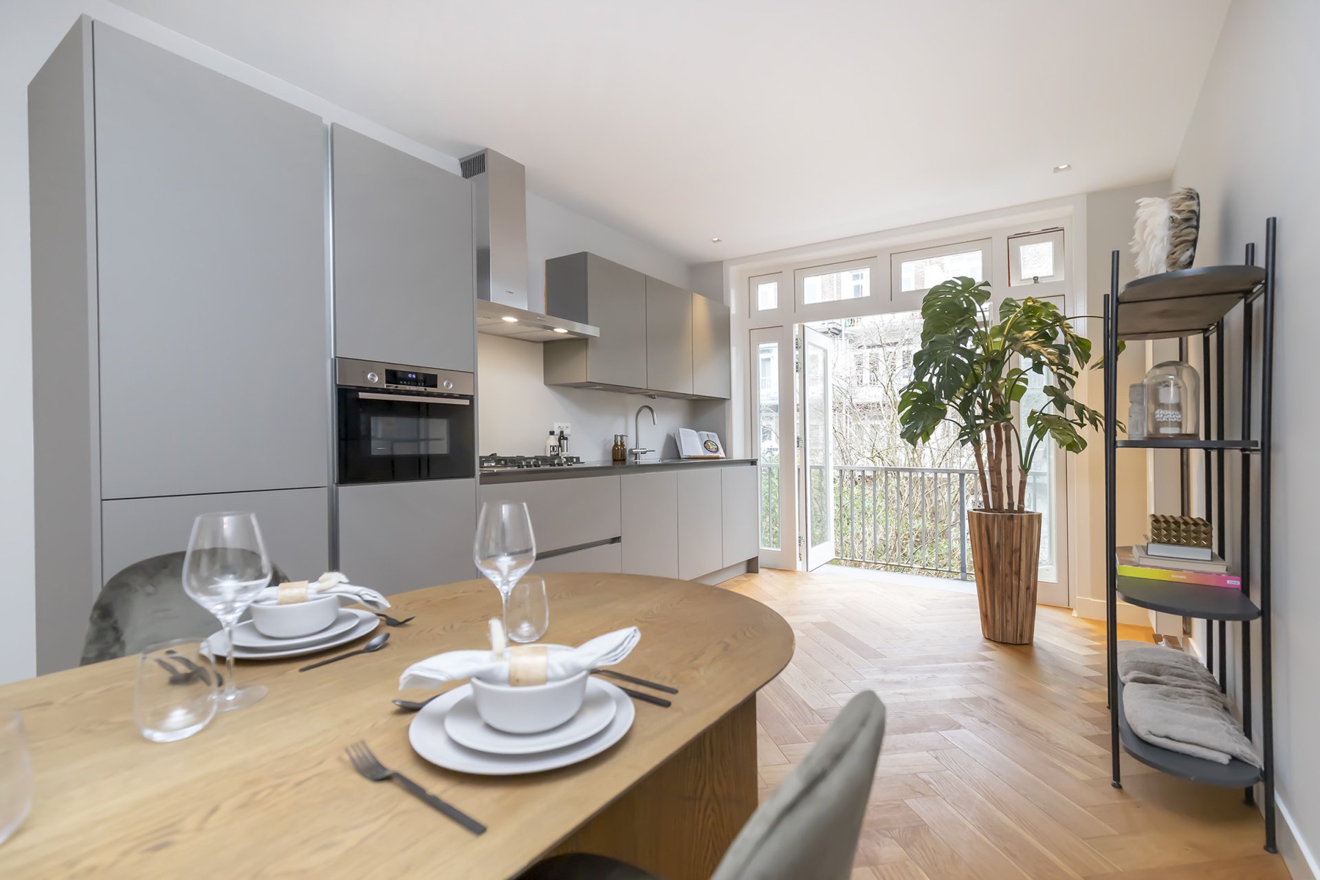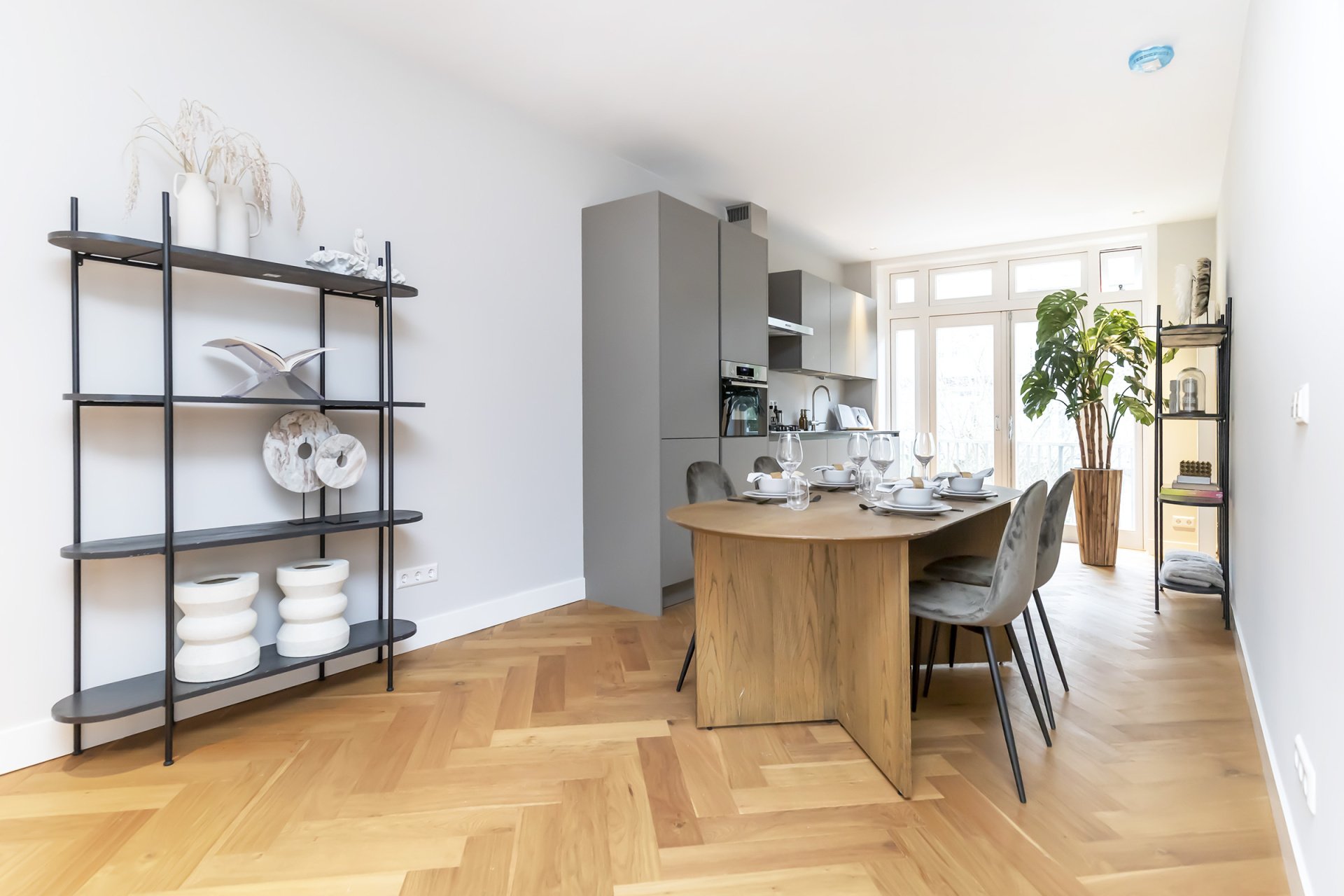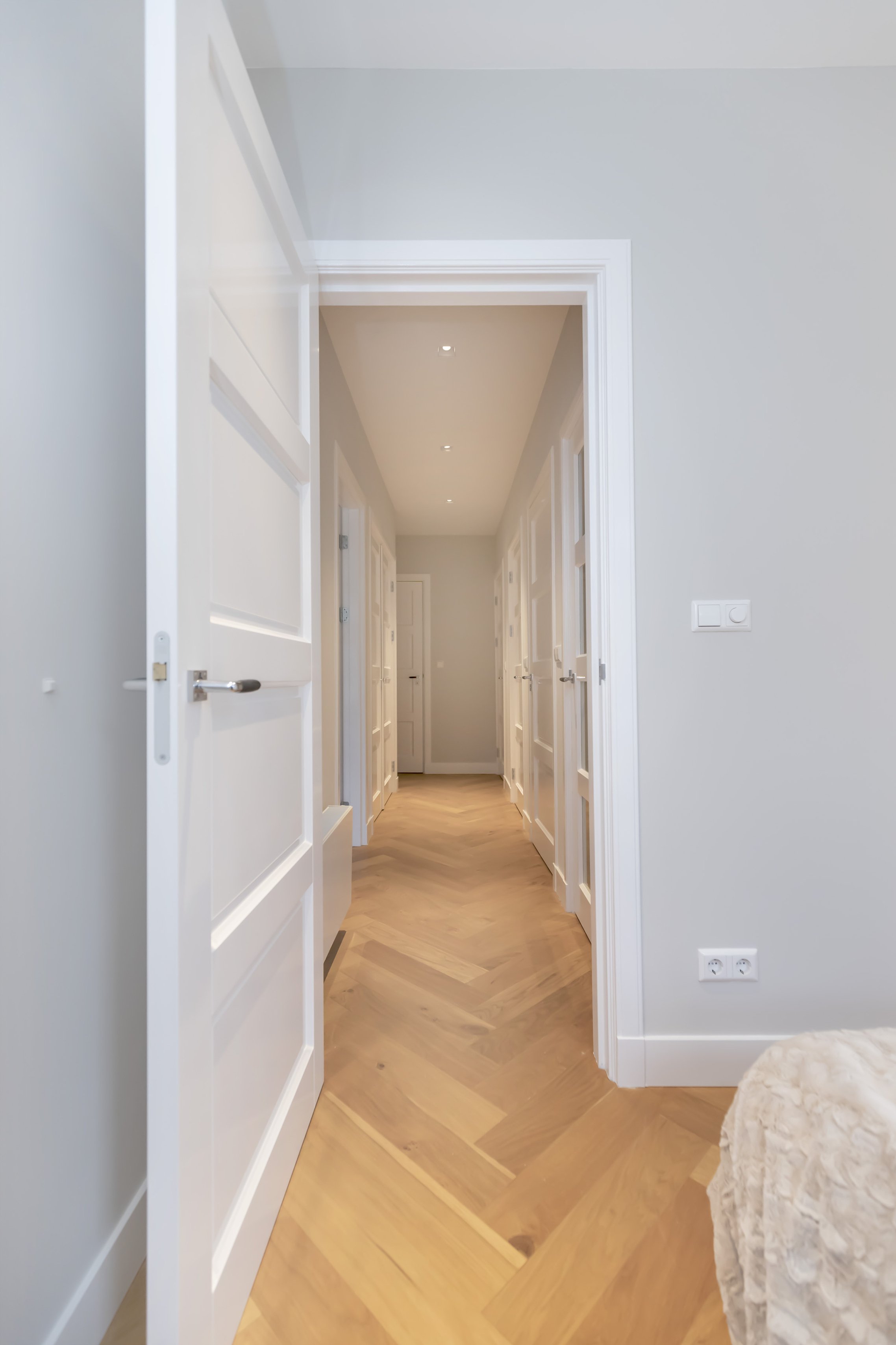 -Visgraad vloer door het gehele appartement.