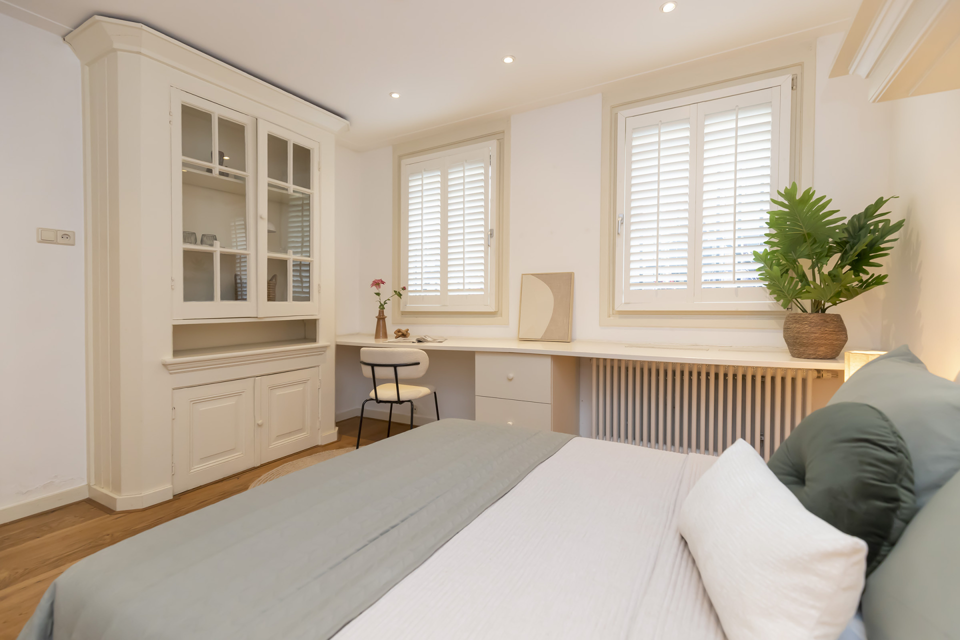 De tweede slaapkamer is eveneens goed bemeten en flexibel in te delen als slaap-, werk- of logeerkamer.