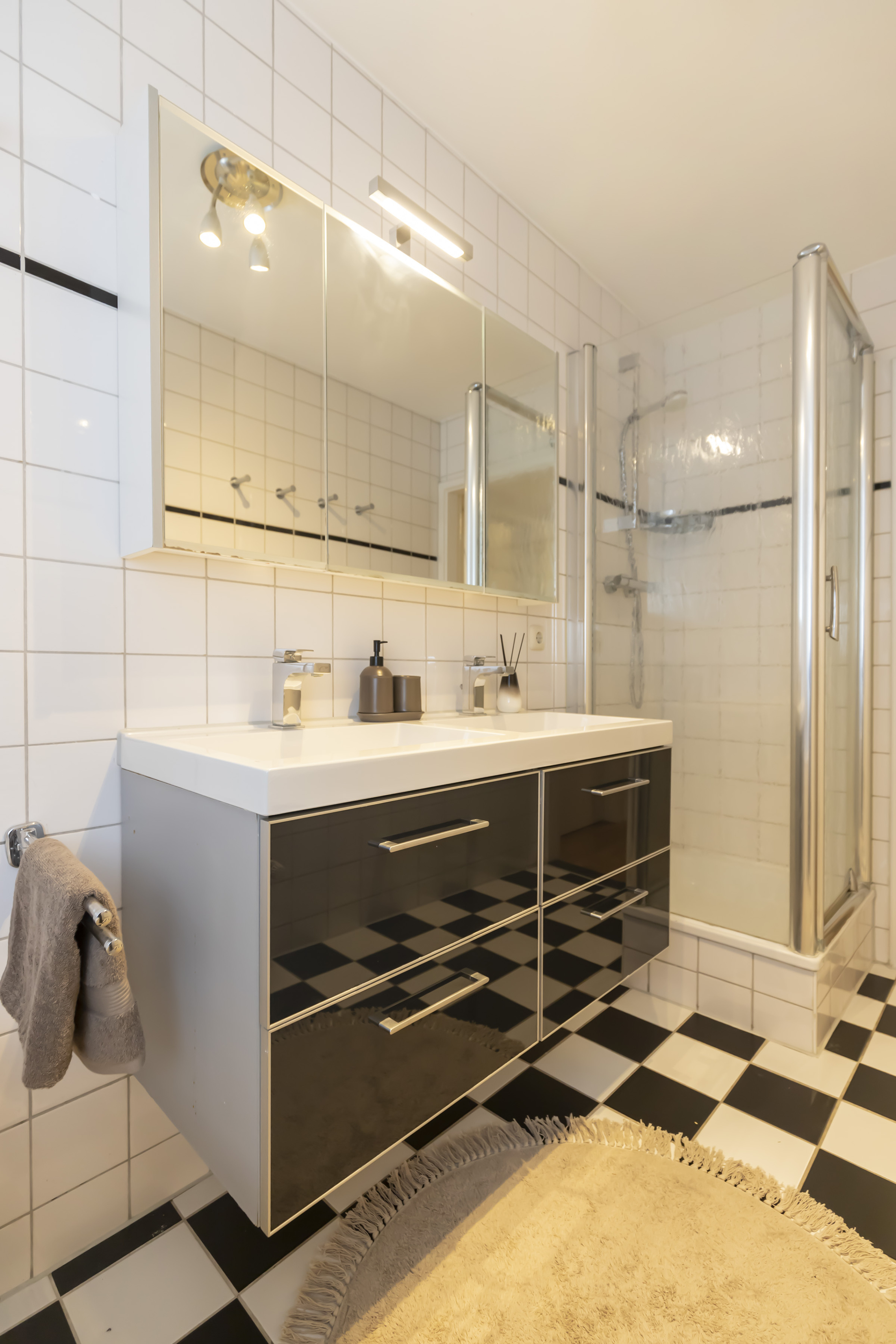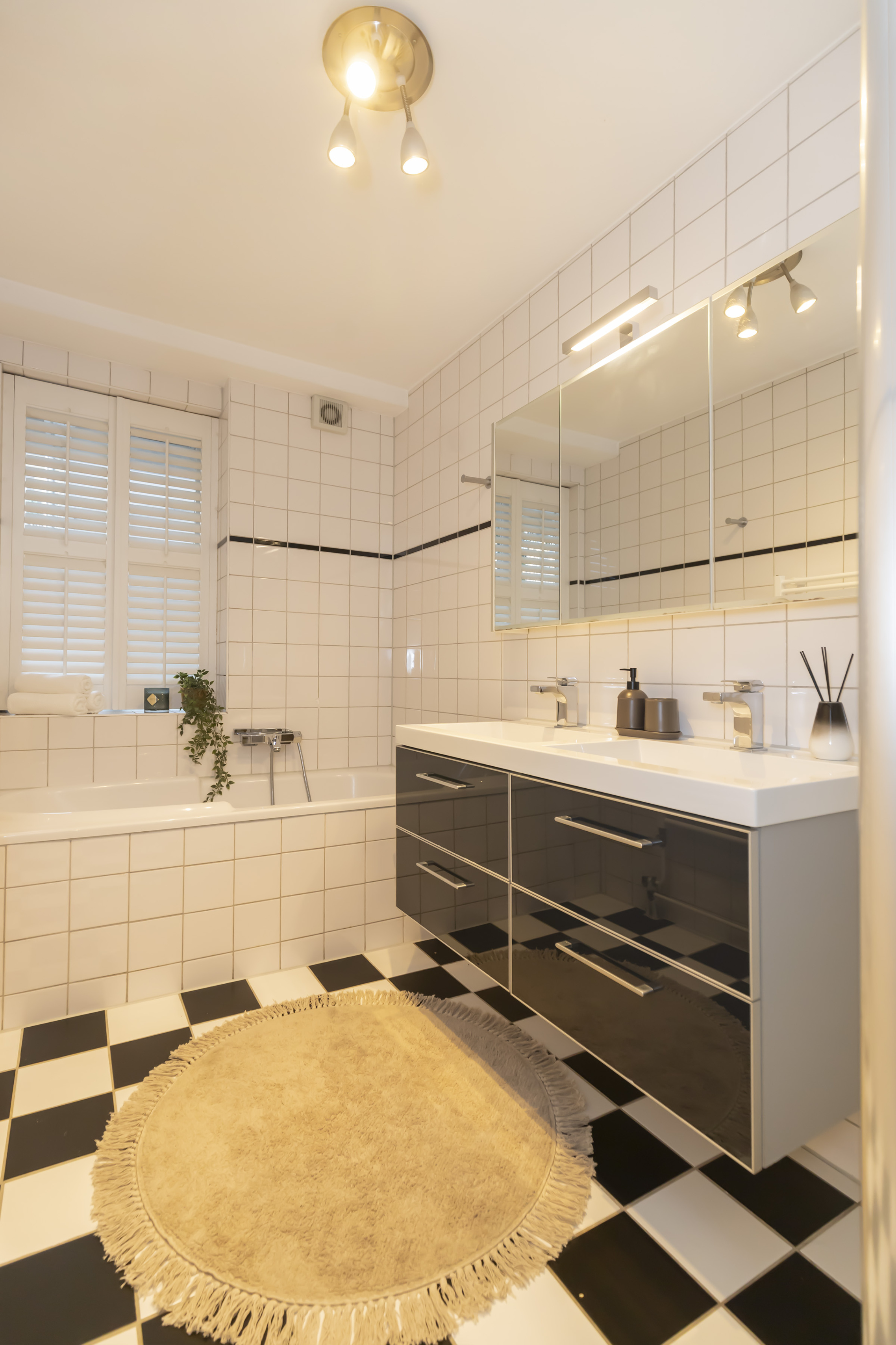 De badkamer is compleet uitgevoerd met ligbad, separate douche, wastafelmeubel en designradiator. Daarnaast is er een aparte wasruimte, een tweede separaat toilet en extra bergruimte in de interne berging.