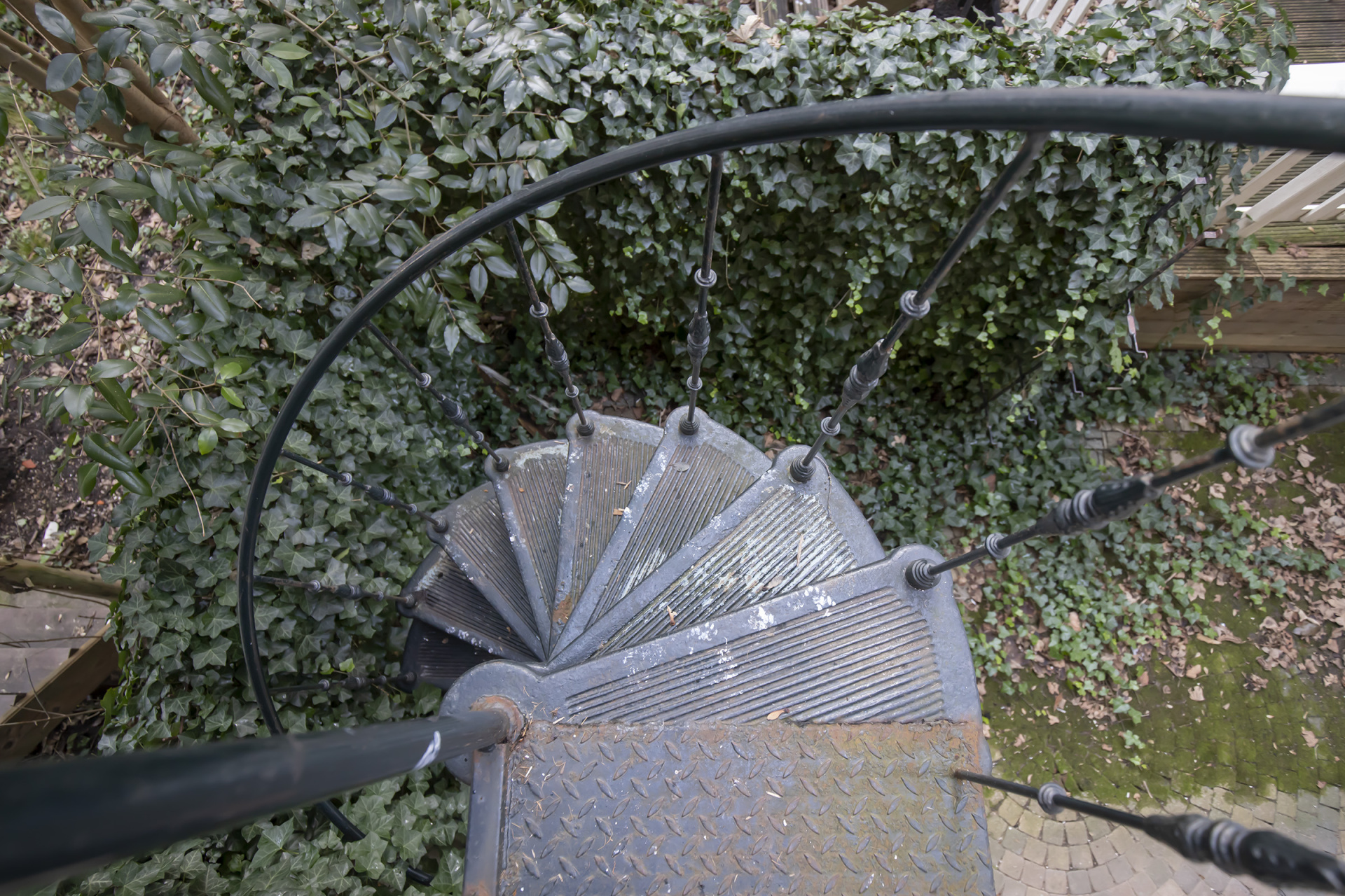 The approx. 25 m² south-facing garden offers an excellent balance of sunshine and privacy. Direct access from both the lower ground floor and the raised ground floor via the charming spiral staircase enhances the overall living comfort.